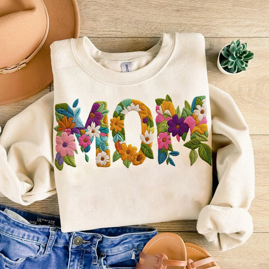 Floral Embroidery Mama Sweatshirt, Mothers Day Shirt