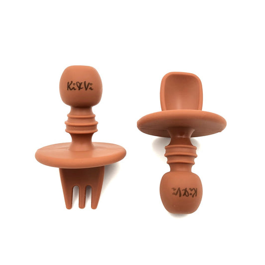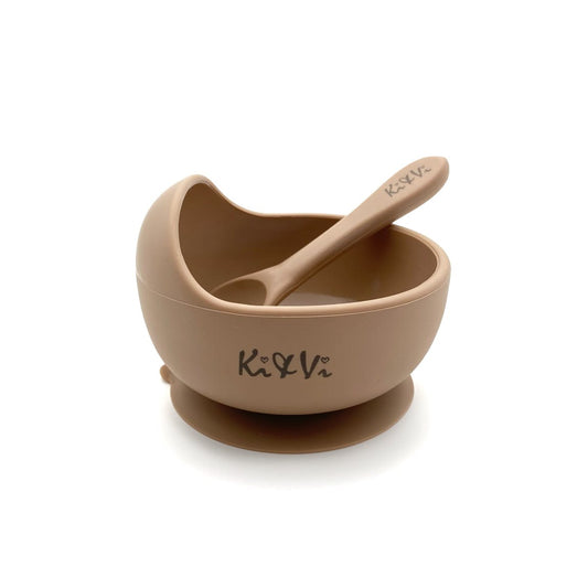 My First Bowl & Spoon in Taupe & Spice Pumpkin