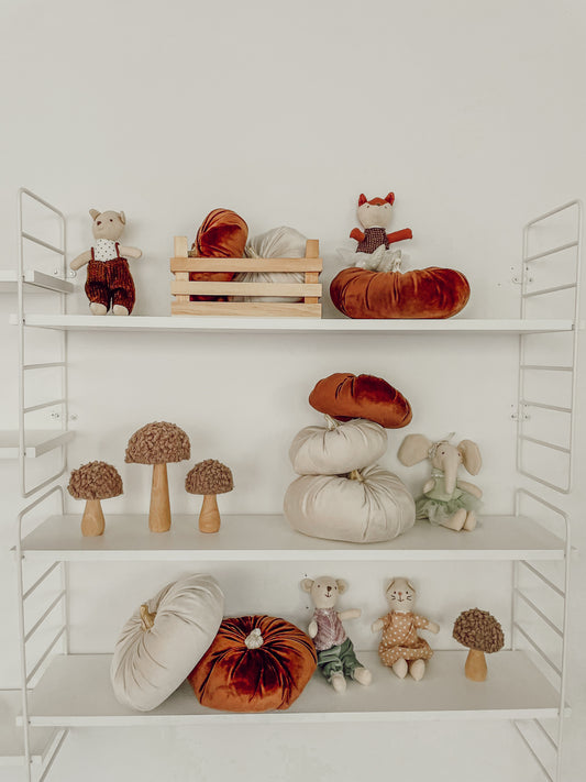 Pumpkin Shaped Pillow - White Velour cord 18cm