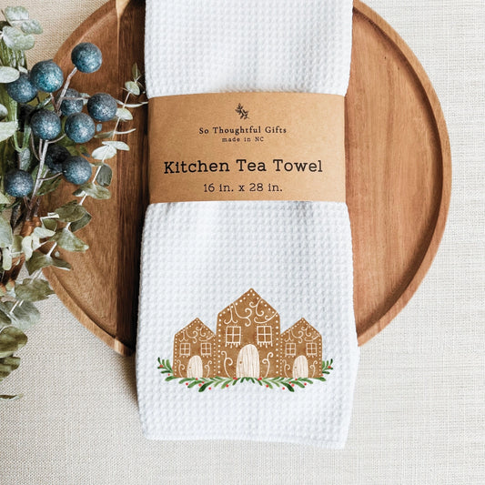 Christmas Dish Towel - Gingerbread Village | Kitchen Towel