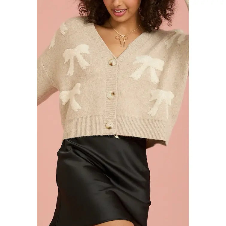 All Over Bow Crop Cardigan