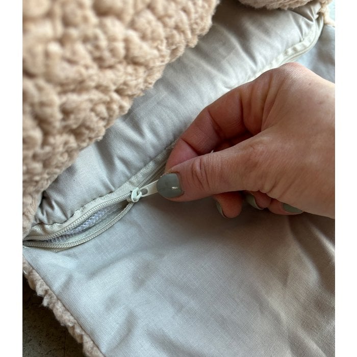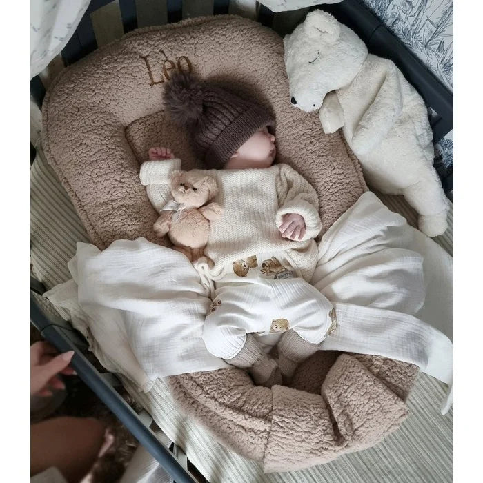 Never leave a child unattended lying at height (sofa, table, kitchen counter). The cocoon does not protect against falling. The cocoon should only be carried empty, it is not a carrier or a rocker. For safety reasons, the product should be used under the supervision of an adult. The drawstring should always be tied in a knot at the end; remember to always place the baby's head in the opposite direction to the strings, use the socket on a flat surface. The product should not be used in a bed while the child is sleeping without parental supervision.