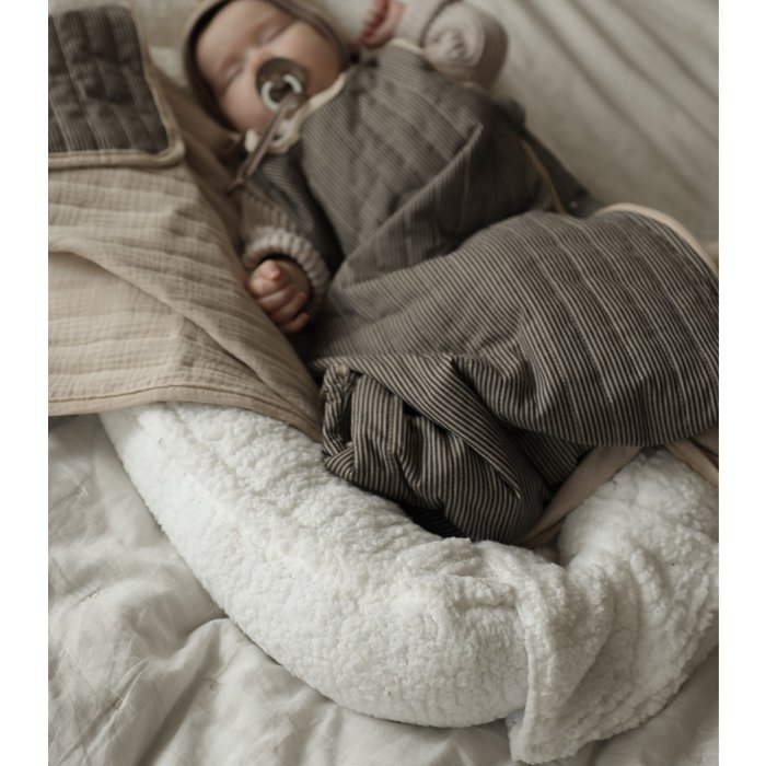 Never leave a child unattended lying at height (sofa, table, kitchen counter). The cocoon does not protect against falling. The cocoon should only be carried empty, it is not a carrier or a rocker. For safety reasons, the product should be used under the supervision of an adult. The drawstring should always be tied in a knot at the end; remember to always place the baby's head in the opposite direction to the strings, use the socket on a flat surface. The product should not be used in a bed while the child is sleeping without parental supervision.