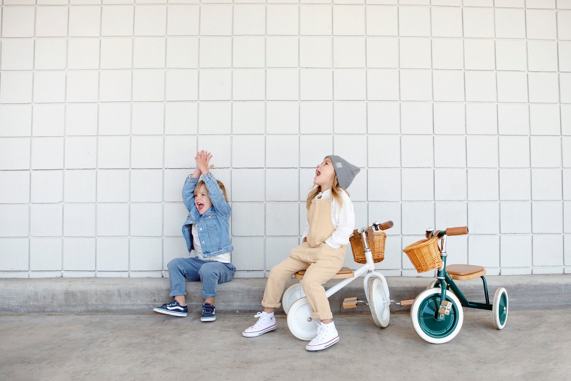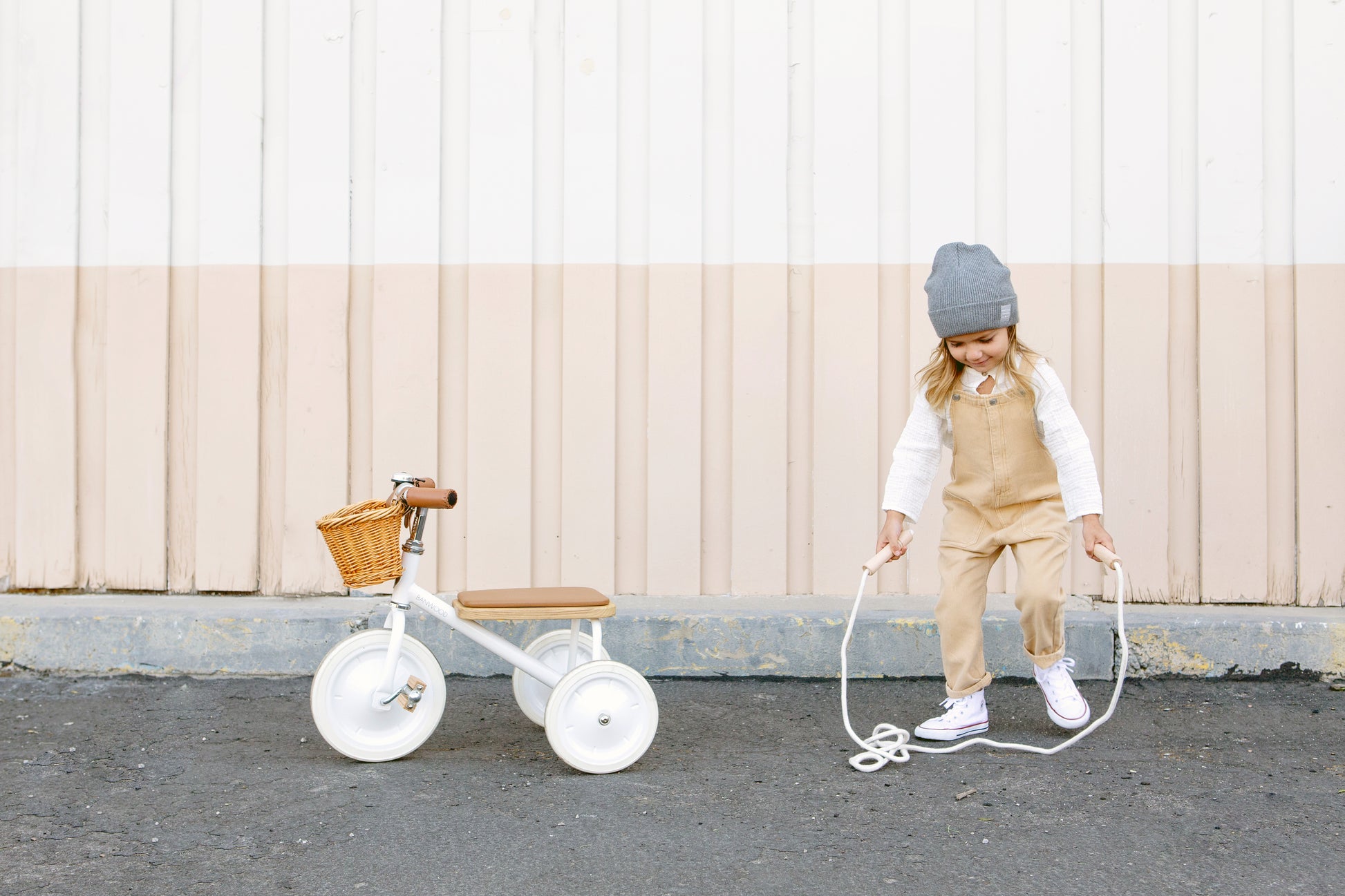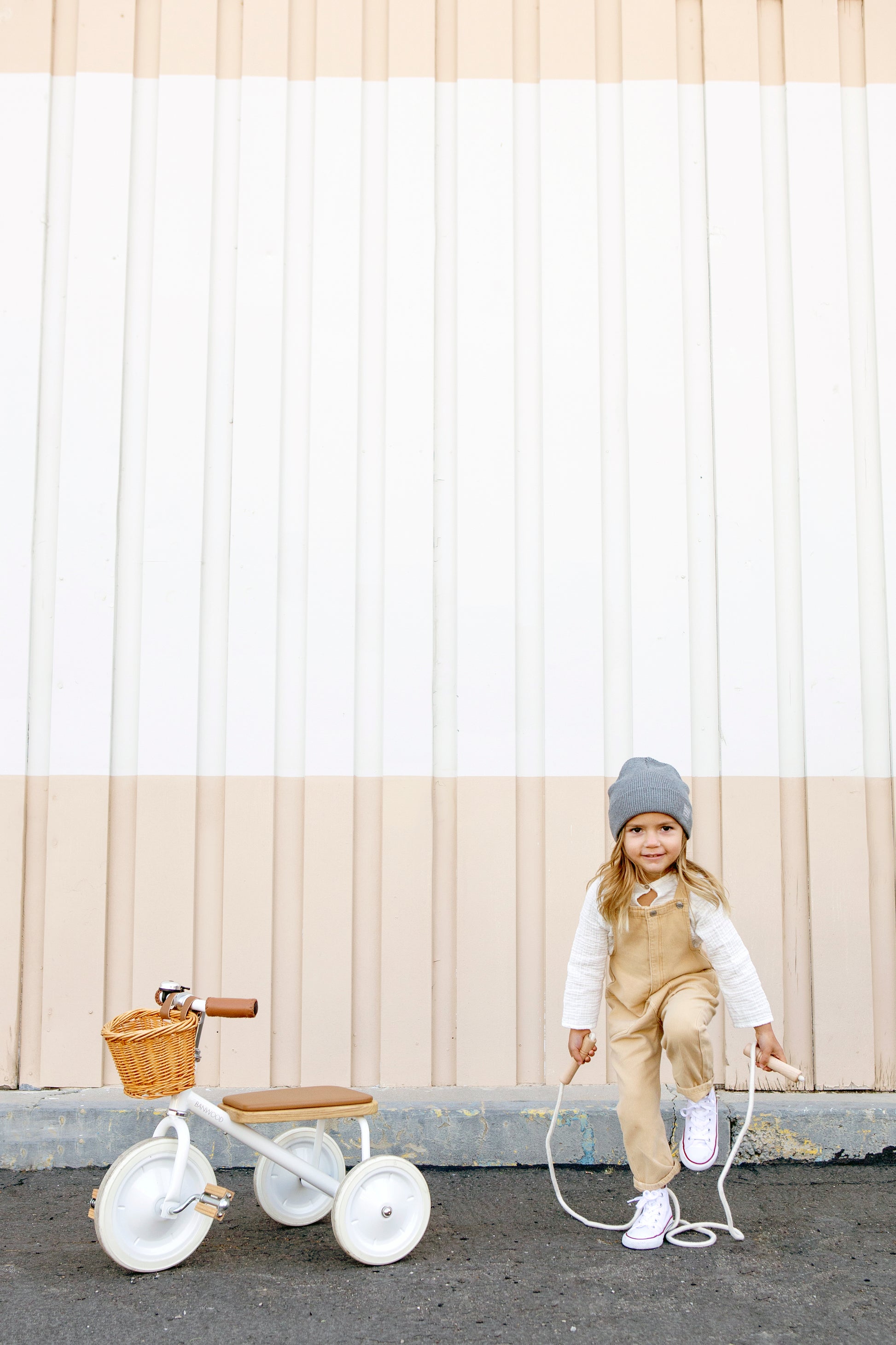 This white toddler tricycle is minimalistic and timeless and fits the youngest family member perfectly. An outdoor adventure with the smallest one on a kids trike awaits!
