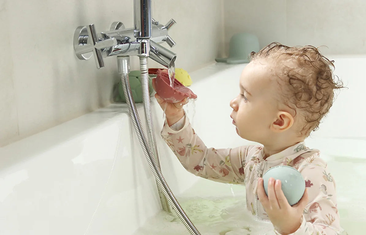 This makes the bath toys indispensable in the bathroom! And best of all: Thanks to the open, semi-circular shape, the bathtub toy is very easy to clean. No more mold or stagnant water! The bath toy is not only practical - with its elegant unisex design, it also blends harmoniously into any bathroom and does not have to be put away after each bath. Long-lasting fun: the versatile silicone bath toy provides fun from six months to around six years.