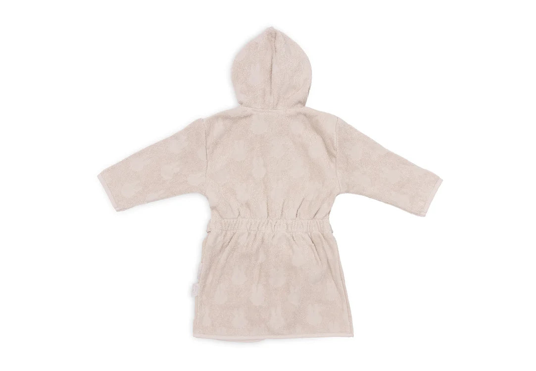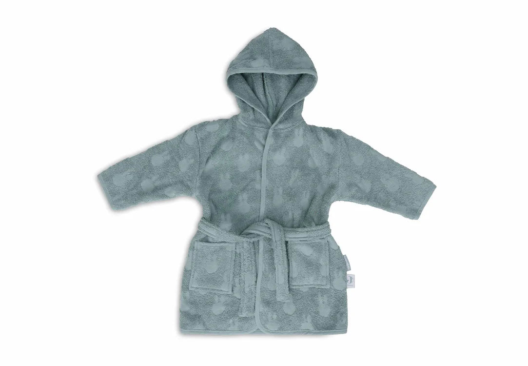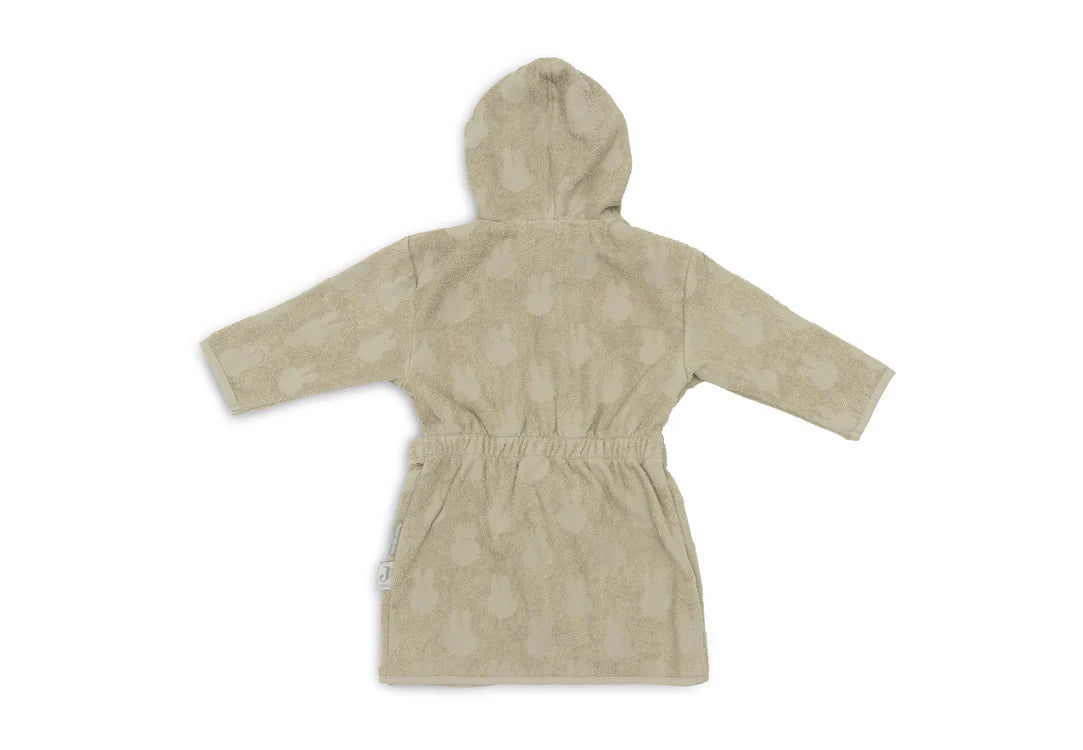 This cute Miffy bathrobe has a subtle print in the beautiful colour Sea Green! A terry bathrobe is always useful for your little one. The bathrobe is perfect to use after bathing, showering or swimming. The soft terry absorbs water easily and keeps your little one nice and warm. The hood easily dries the hair. The bathrobe has a practical snap fastener to keep it closed when wearing, elastic in the back for the perfect fit and the belt is attached to the bathrobe so you can't lose it.