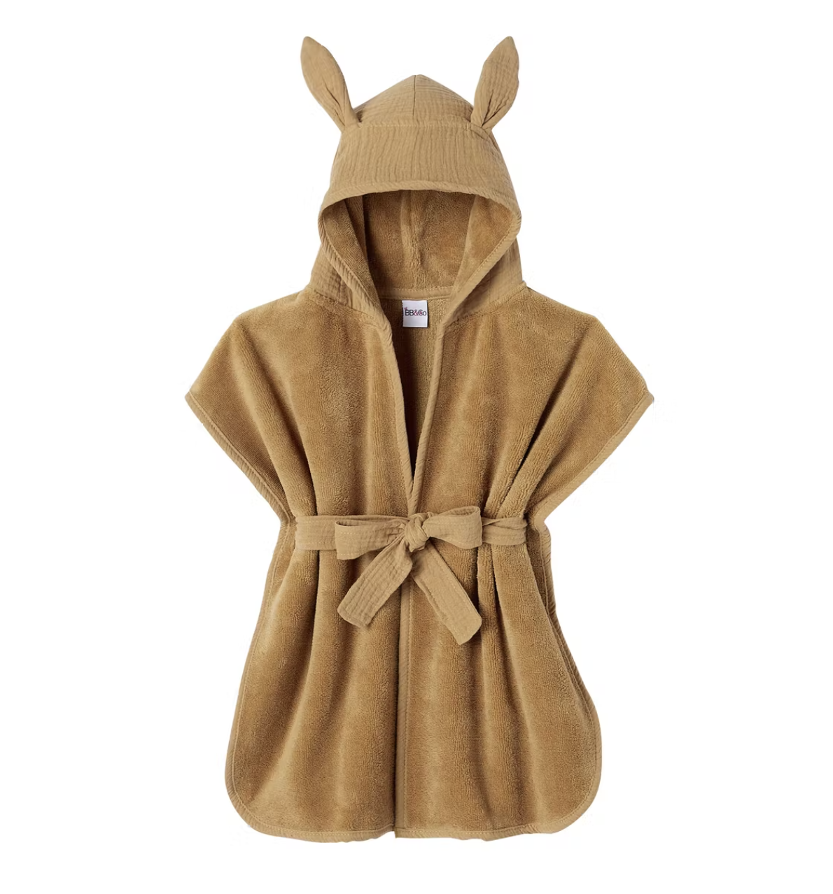 This bathrobe opens entirely at the front to place baby there and wrap him in softness after the bath. As soon as baby sits down or stands up, the bathrobe stays in place thanks to its tie belt.