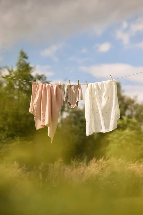 You can never have enough cloths, you can use them for everything and wash them again. This muslin cloth in the Lovely Birds print is imbued with tenderness and elegance, perfect for creating a lovely atmosphere in the nursery. The Lovely Birds print brings an enchanting scene of birds, flowers and twigs and takes you into nature. The colours Wild Rose, Sea Green and Ash Green fit perfectly together and radiate peace and harmony. The background of this cloth has the neutral Ivory colour. Who can use these 3-pack muslin cloths?