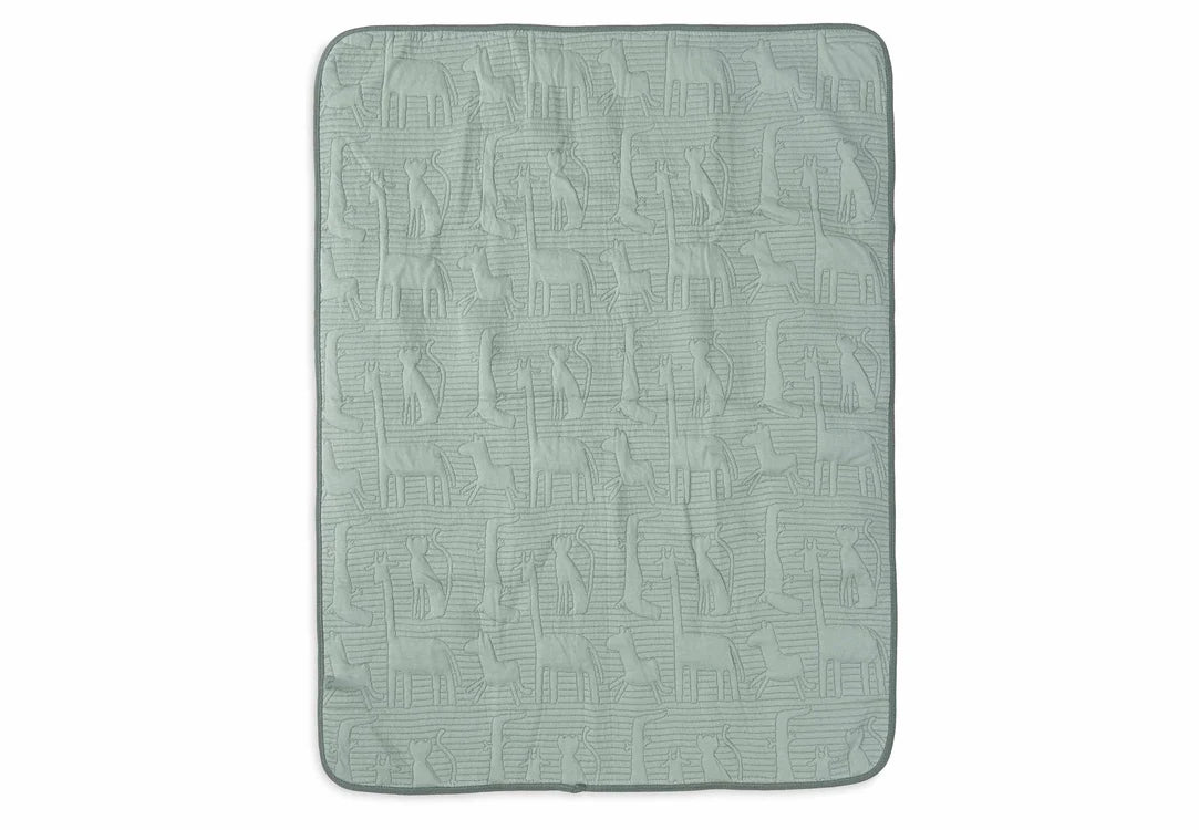 This blanket is a real eye-catcher in the nursery! With the beautiful colours Biscuit/Oatmeal or Ash Green/Laurel you can wear this blanket on both sides and this blanket is therefore completely reversible. The fabric is 100% cotton and the filling is polyester. Introduce your child to all the animals on this cosy print and combine this blanket with the other items from the Jungle Jambo collection! This blanket has a TOG value of 2.