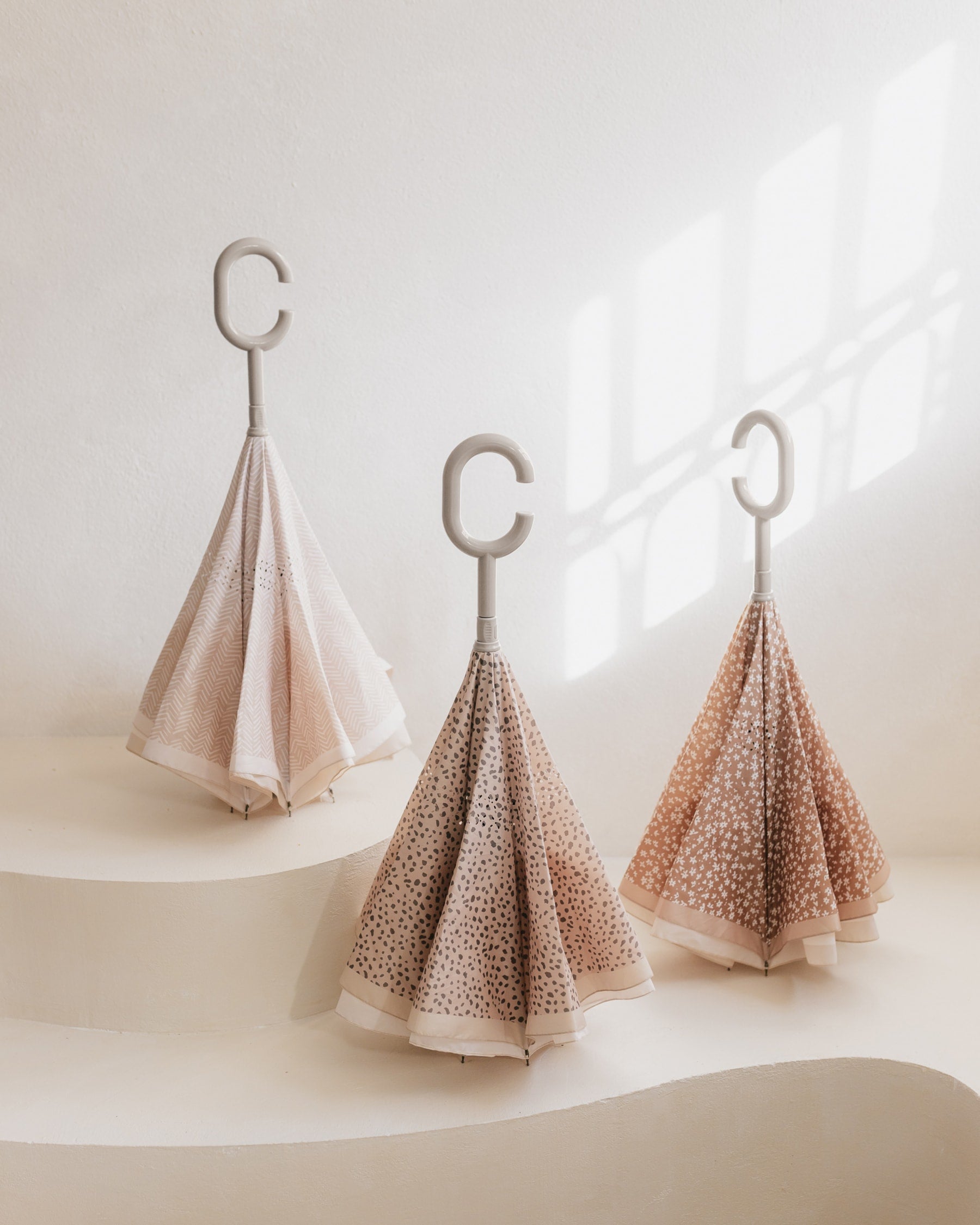 Mrs Eartha's umbrellas have a reverse opening to facilitate their use in the daily routines.