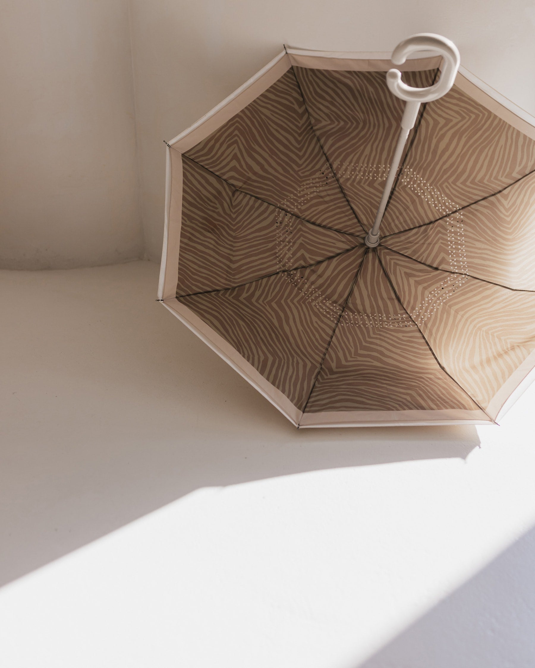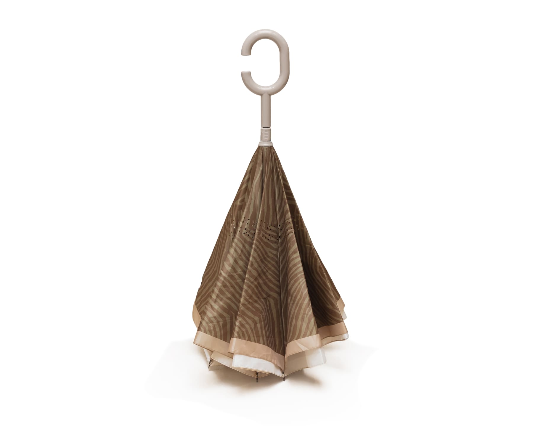 Mrs Eartha's umbrellas have a reverse opening to facilitate their use in the daily routines.