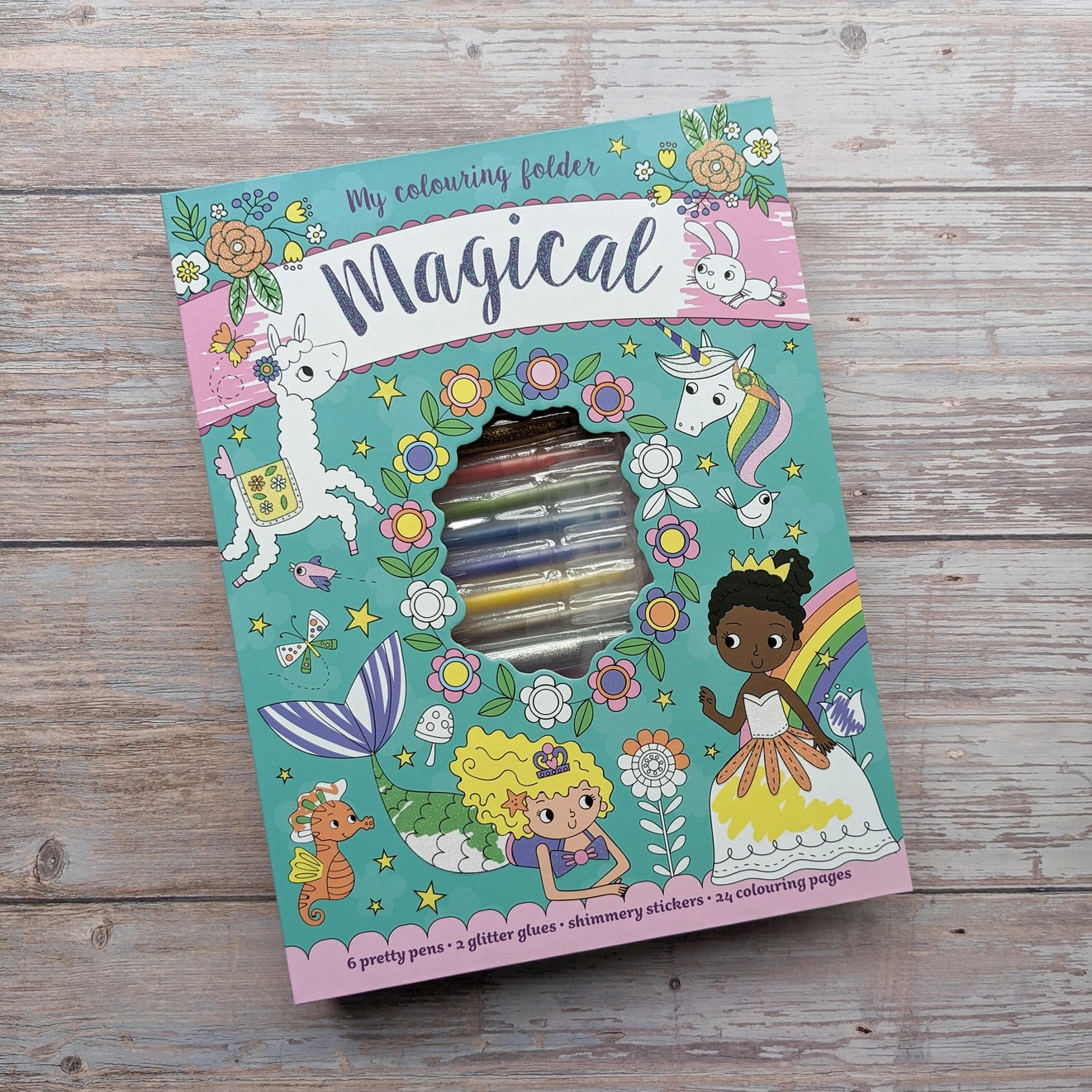 Colour in the fun scenes with the neon or pastel pens, and then make them shine and sparkle with the stickers and glitter pens!