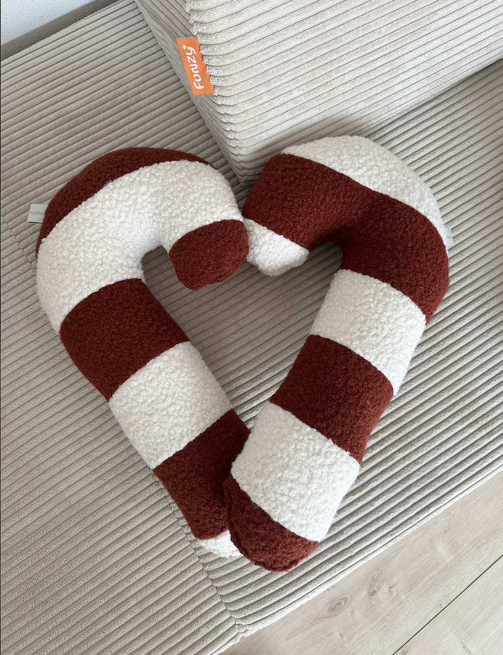 • Design: Cuddly, fluffy, maxi candy cane decorative cushion.