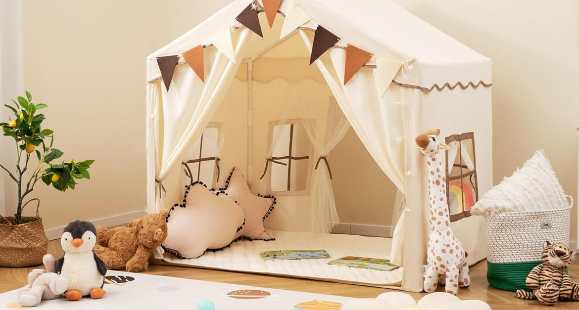 Equipped with a plush, breathable cotton mat, this tent provides a safe and comfortable space for children to play, read, or nap. For added convenience, the mat is machine washable, making cleaning effortless and time-saving.