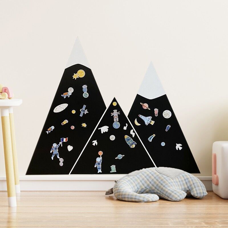 - 3 flexible magnetic boards in the shape of a mountain peak: 118x92.5 cm