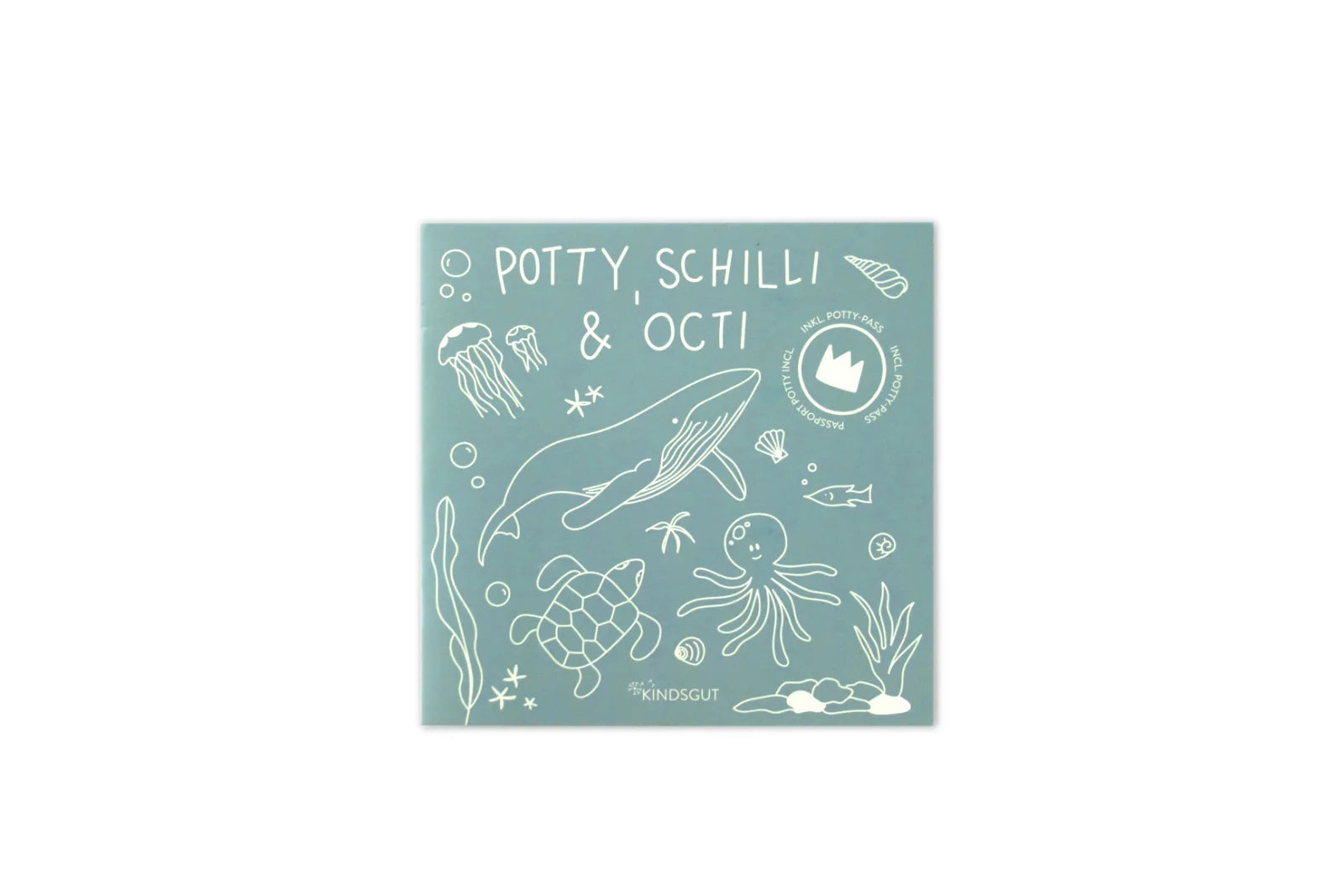 Our Potty book: Potty, Schilli and Octi introduce themselves in German, French and English. The interactive book promotes an understanding of colors and provides exciting whale facts. With the integrated Potty Pass, your child becomes a "Potty Star" and supports you in potty training.