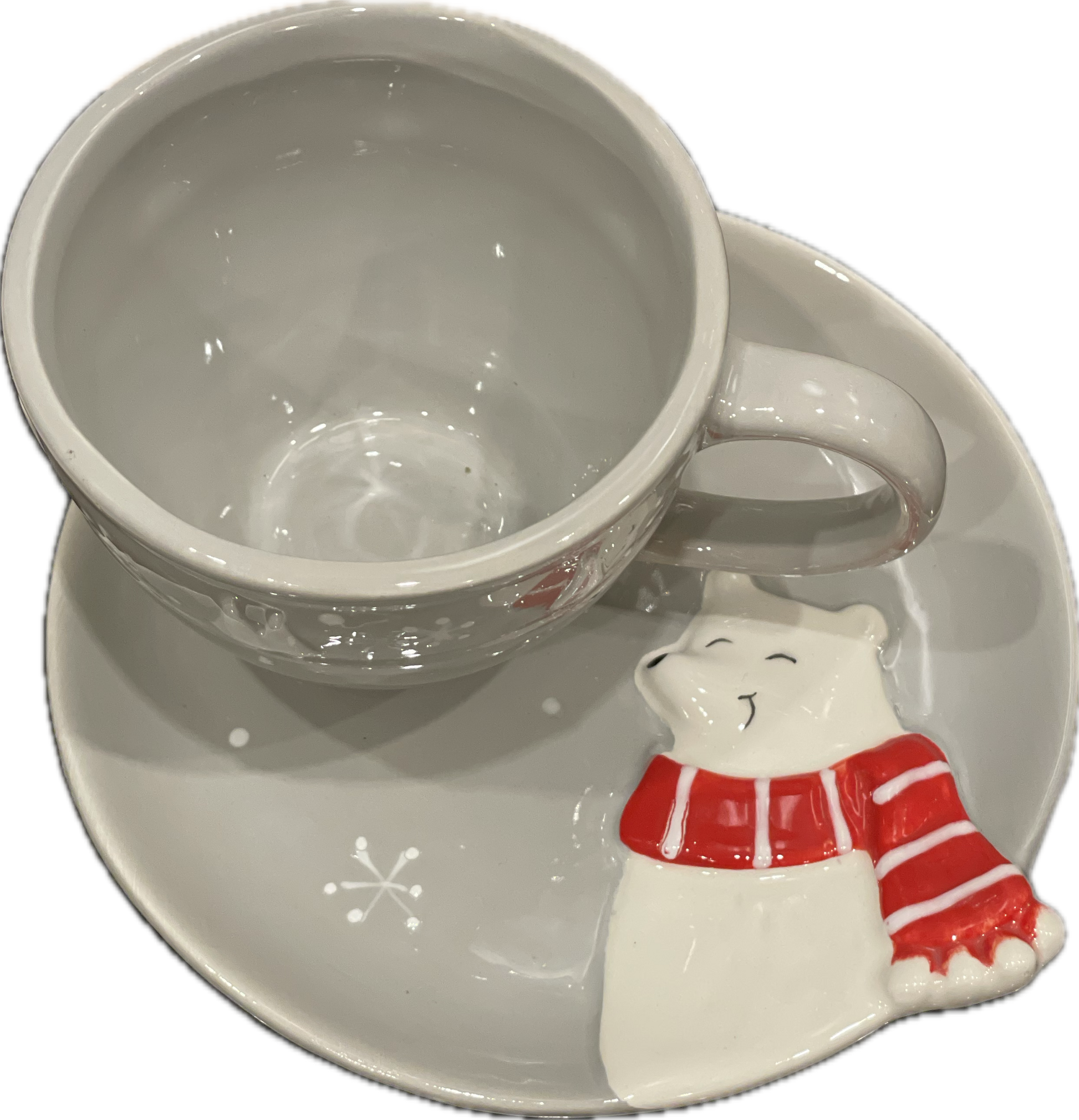Christmas Polar Bear Mug & Saucer Set for Kids