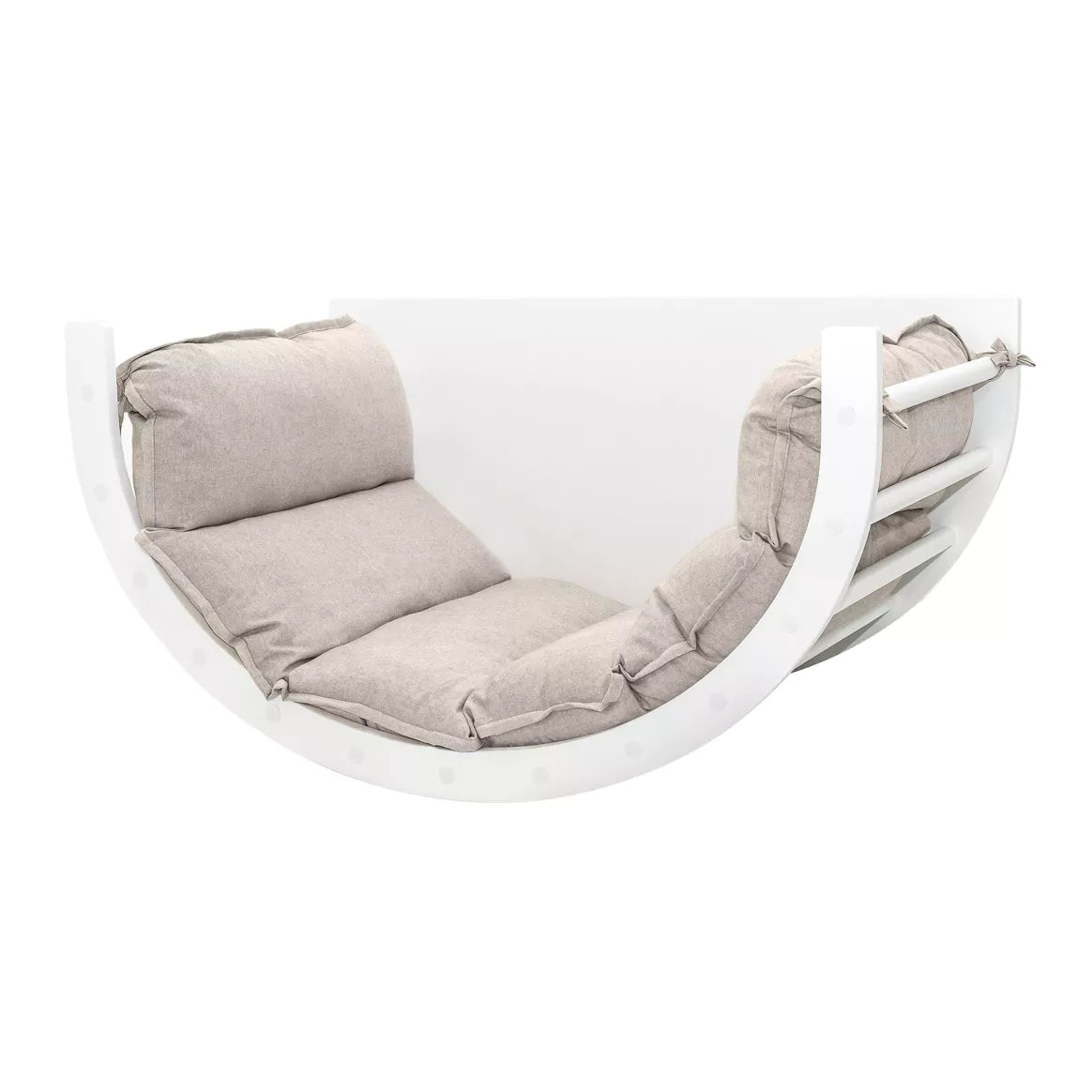 The KAURA cushion is designed for use with the LUOTO climbing arch when the arch is turned upside down and used as a rocker. The pillow is soft and fluffy, making rocking a comfortable and calming experience.