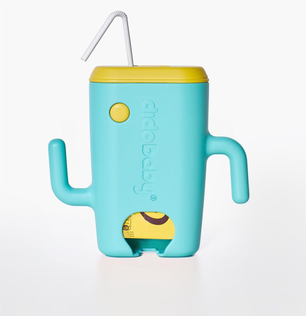 Use of Didopoucher is extremely simple and practical. You just need to flip the support depending on whether you are going to place the pouch or the juice brick, open the lid, insert it, and that’s it.
