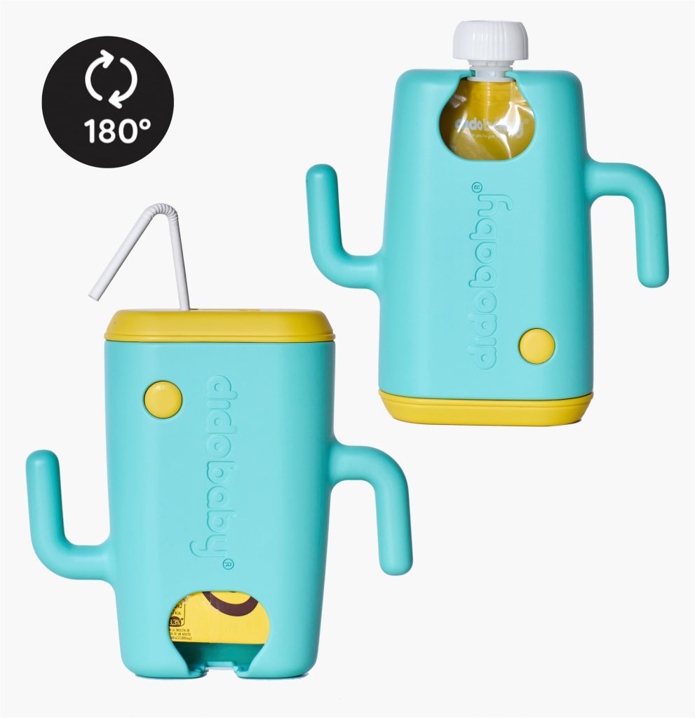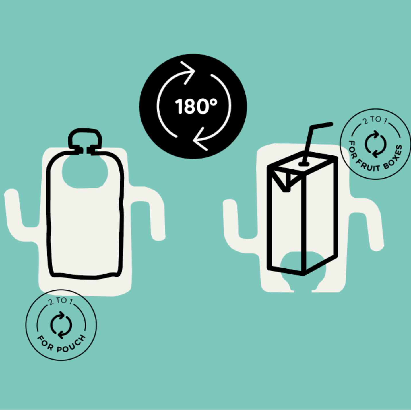 With Didopoucher, baby led weaning becomes even easier, more comfortable and safer. Its main feature, the fact that it is TWO TO ONE, allows you to flip the support and use it with both fruit bags and juice boxes, adapting to the changing needs of your little one.