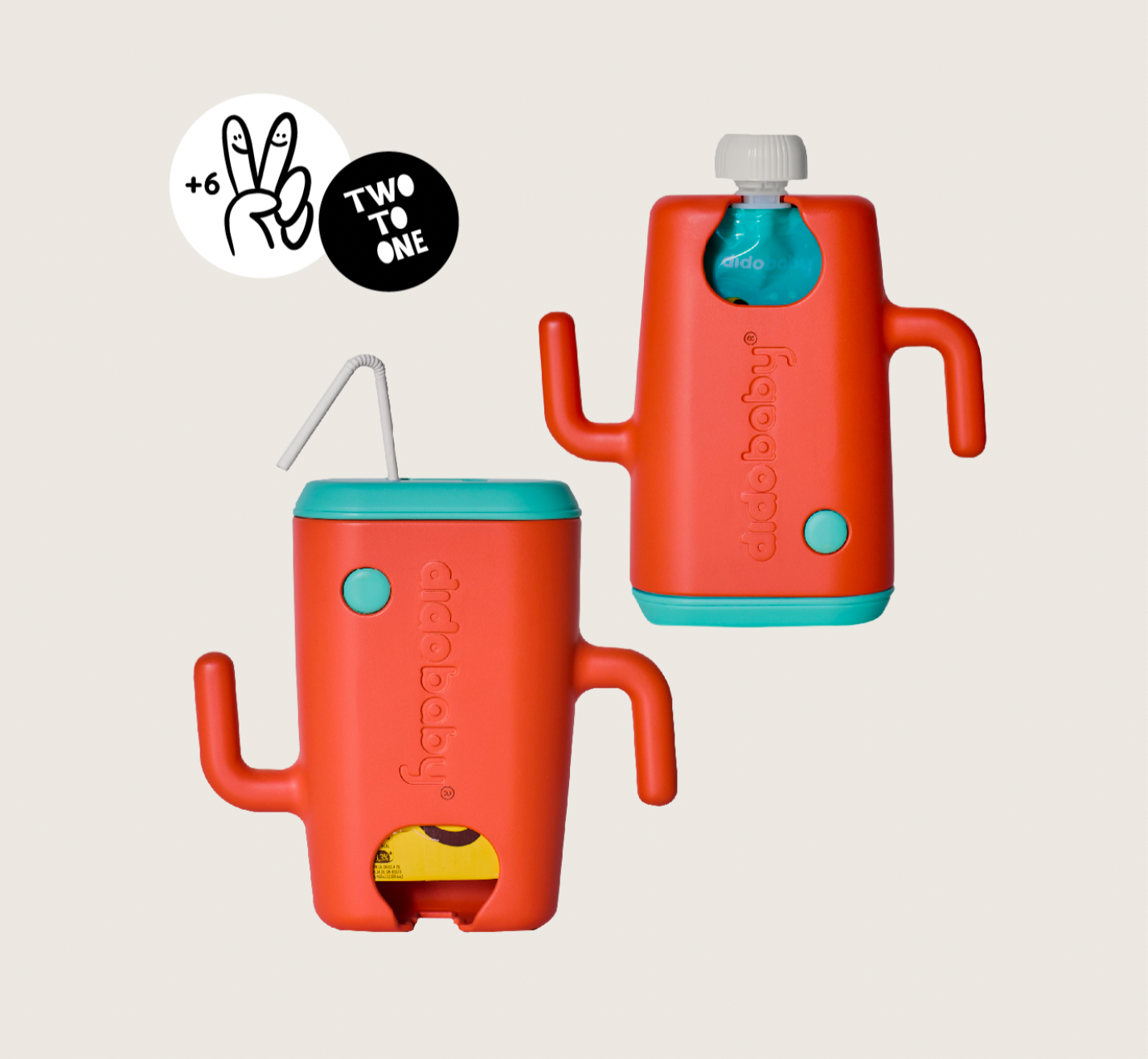 With Didopoucher, baby led weaning becomes even easier, more comfortable and safer. Its main feature, the fact that it is TWO TO ONE, allows you to flip the support and use it with both fruit bags and juice boxes, adapting to the changing needs of your little one.