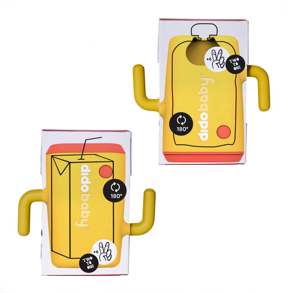 With Didopoucher, baby led weaning becomes even easier, more comfortable and safer. Its main feature, the fact that it is TWO TO ONE, allows you to flip the support and use it with both fruit bags and juice boxes, adapting to the changing needs of your little one.