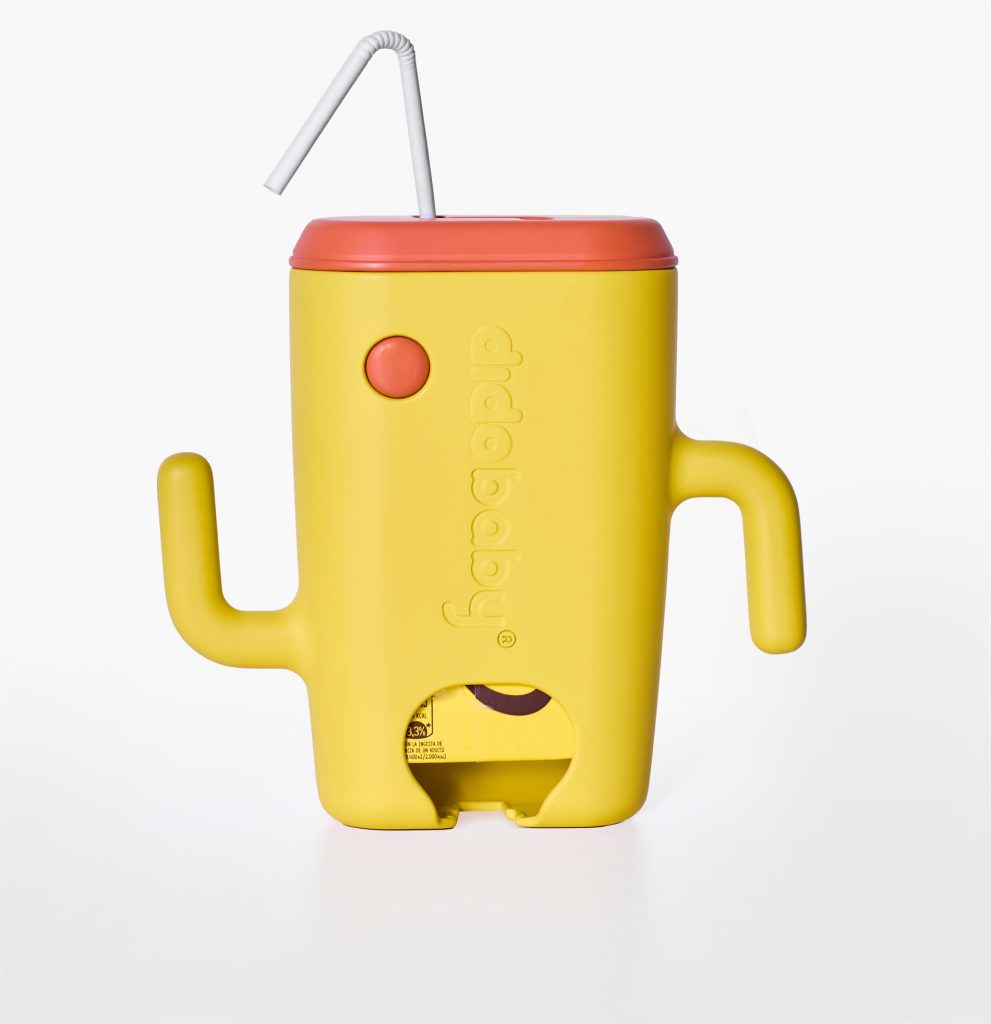 Use of Didopoucher is extremely simple and practical. You just need to flip the support depending on whether you are going to place the pouch or the juice brick, open the lid, insert it, and that’s it.