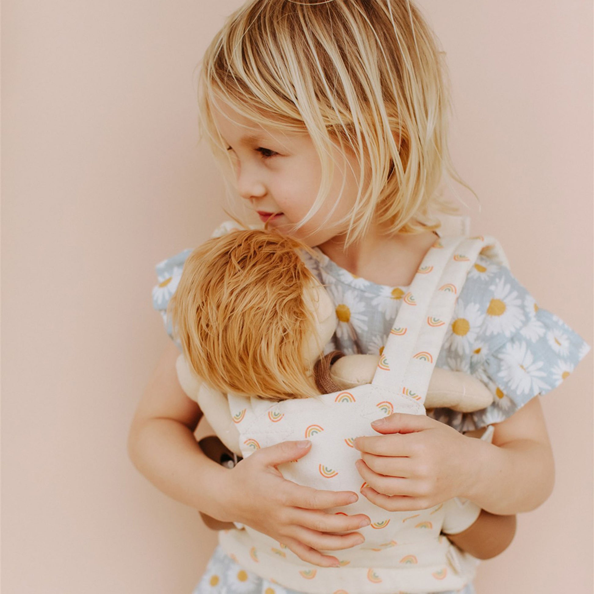 Your little ones can keep their beloved Dinkum Dolls close in our Rainbow Carrier – just like mum and dad! This pint-sized carrier is perfect for play, to share memories of when your little one was a bub or to share in the baby wearing fun when welcoming a new sibling. This mini carrier features our signature Dinkum rainbow print, is easy to clean and has adaptable straps that can be worn on your child’s front or back. Let the hands-free adventures begin!