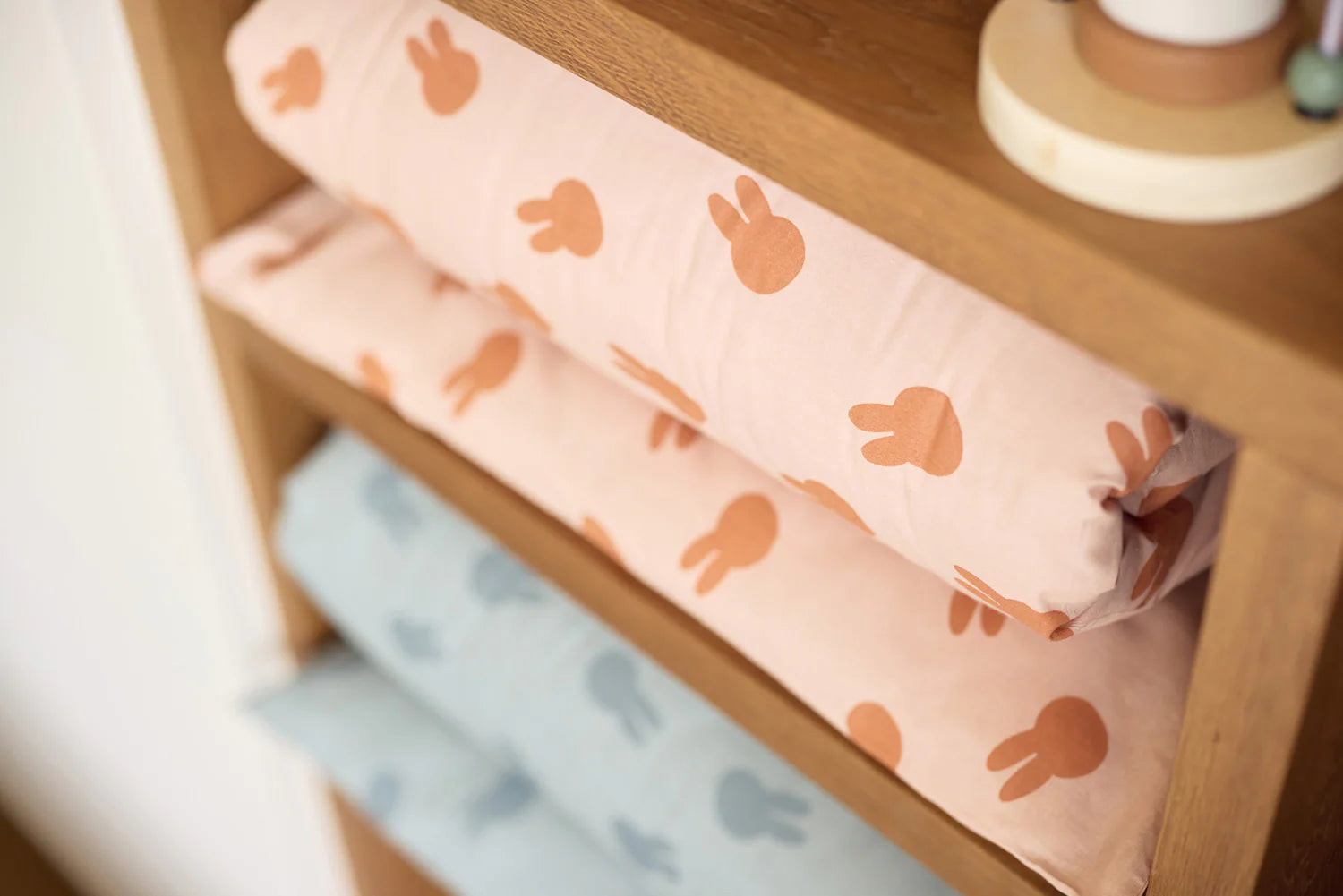 Our cute duvet cover with Miffy Shadow print is suitable for the duvet size that fits in a cot. The cover has a handy opening at the bottom to easily slide the duvet into it, it also comes with pillowcase. Meet the adorable Miffy Shadow print - a true fairy tale for anyone who loves sweet prints and soft colours. Jollein's Miffy Shadow print brings together the beautiful colours of Sea Green and Wild Rose with Miffy in incredibly adorable print.