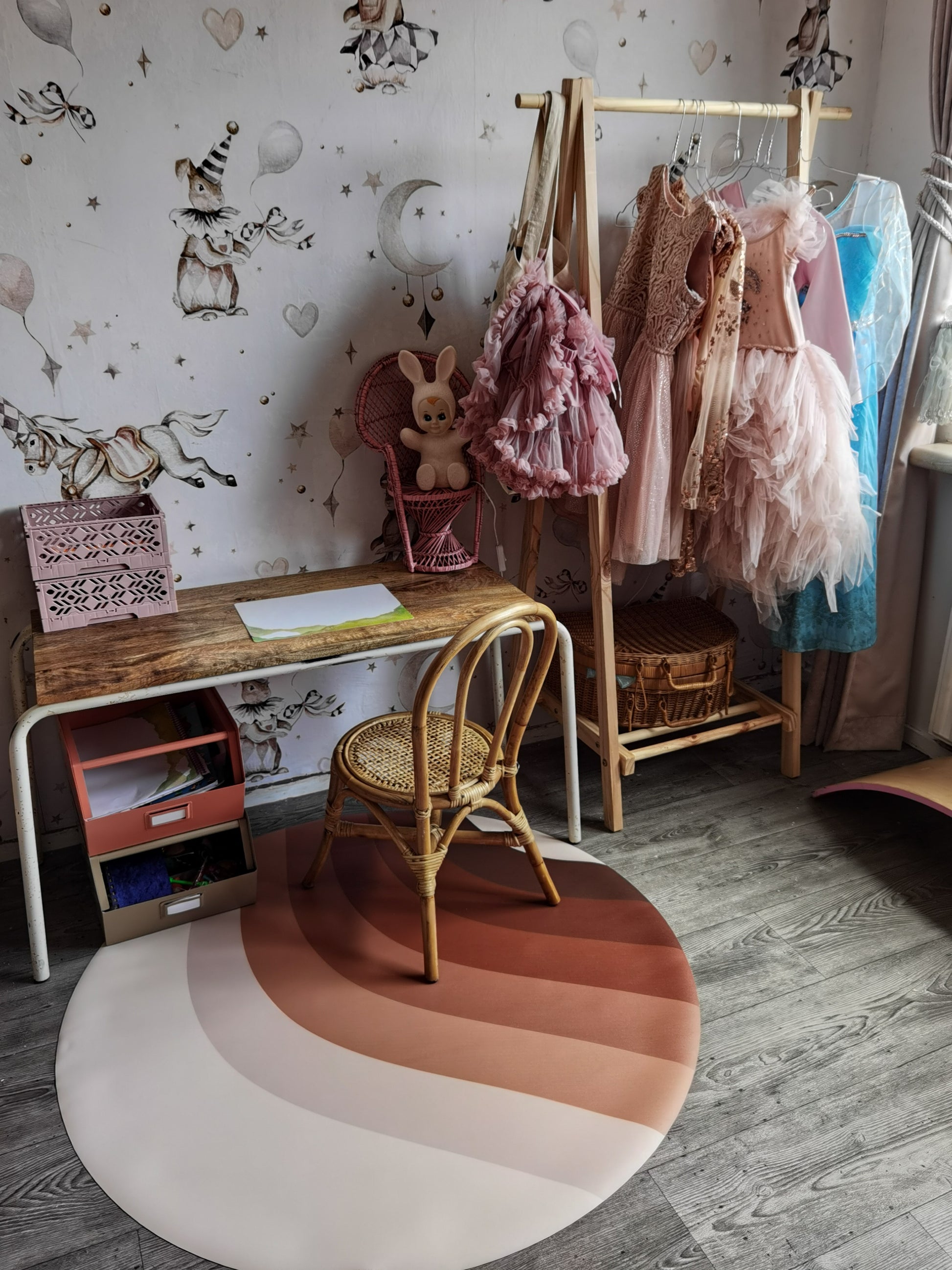 Eeveve floor mats are round with a diameter of 110cm and a thickness of 1mm.