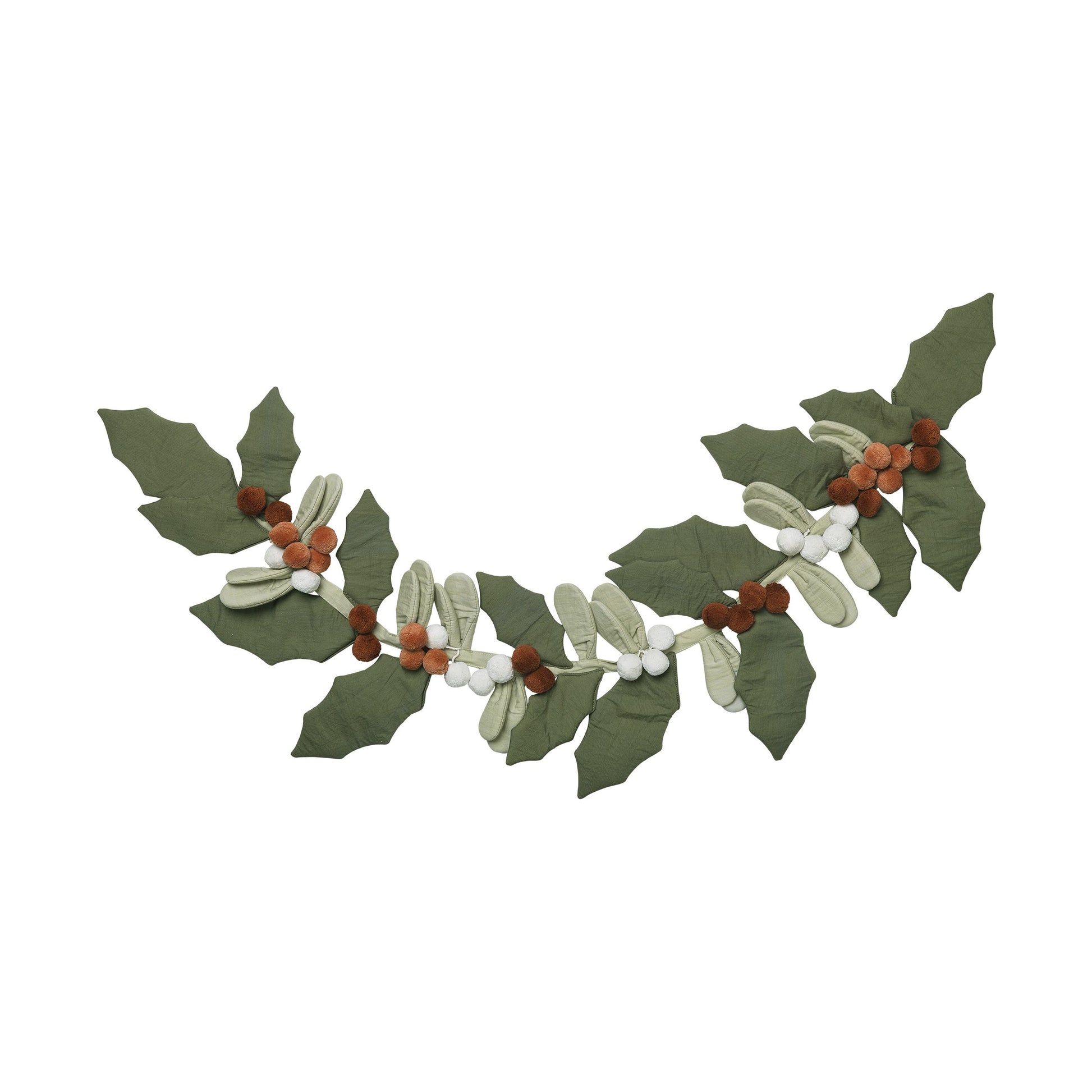 This garland is both bold and sophisticated with its oversized fabric ornaments inspired by the seasonal branches, leaves and berries.