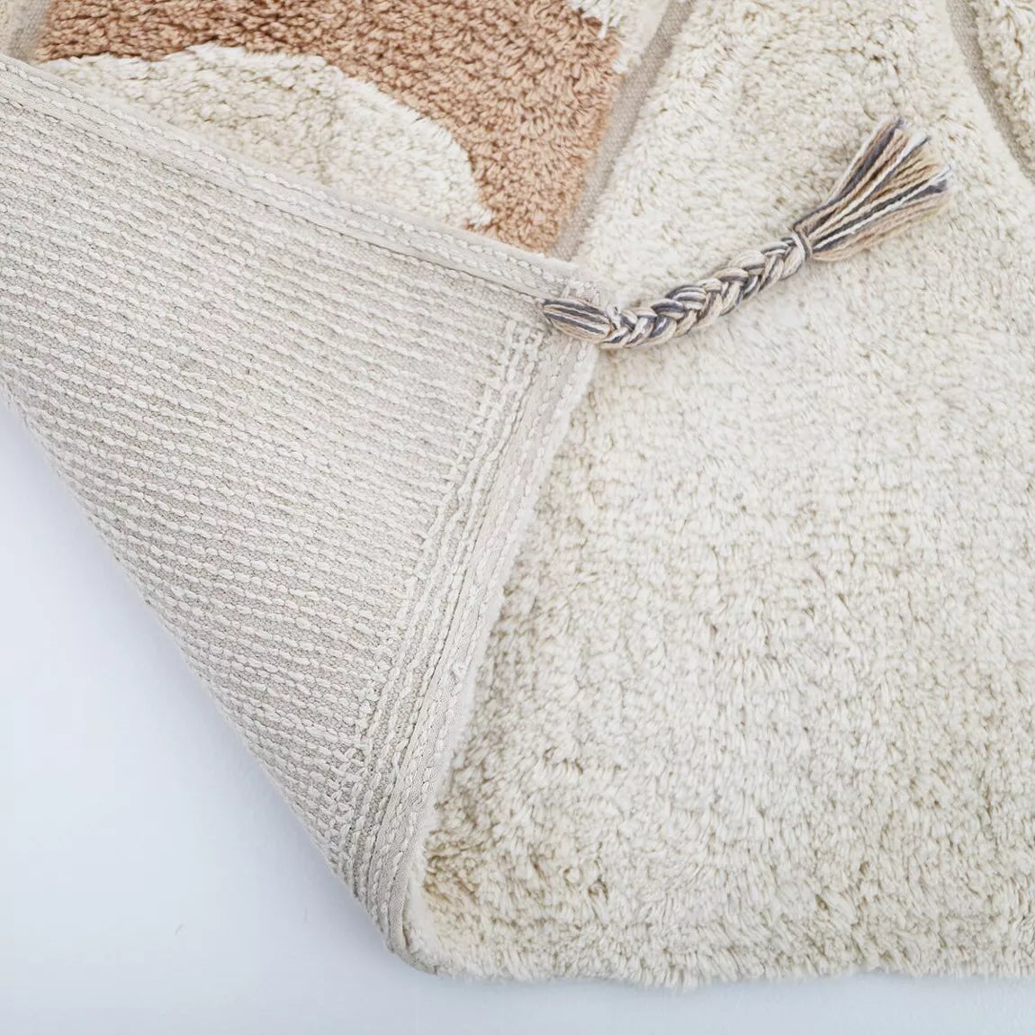 Flowerbear is a soft and comfortable rug made of pure cotton that will quickly become your child's favorite companion. Its original pattern full of delicacy and its neutral shades will perfectly match the bedroom of a little boy or a little girl. With the OEKO-TEX label, Flowerbear guarantees you a healthy and responsible product that combines aesthetics and well-being for your child. For your comfort, this hand-tufted 100% cotton rug is machine washable. Comes with an optional non-slip mat. This rug pad guarantees excellent grip on the floor, prevents the rug from slipping and thus ensures the safety of your children while playing.It is OEKO-TEX certified, meets the strictest standards for harmful substances and thus ensures a healthy environment for your children. © Nattiot - registered model OEKO-TEX STANDARD 100 certification