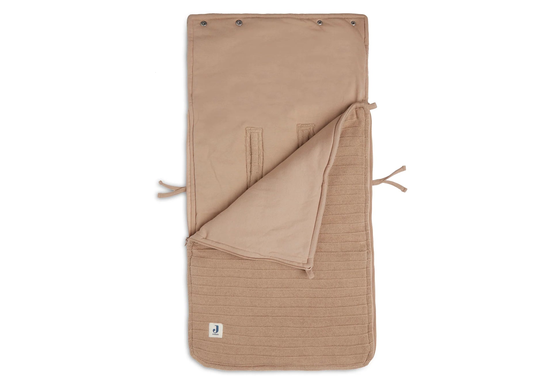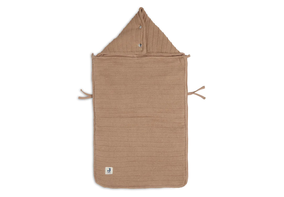 The knitted fabric on the outside of this footmuff makes it look luxurious, and thanks to the ultra-soft fleece on the inside your baby will be even more comfortable. A footmuff is a perfect solution. You can easily put your baby in the footmuff if you fully open the zipper first. And you can easily take your baby from the car seat by opening the footmuff. With one press stud at the top you can easily make a hat, so that your baby's head will also stay warm when you carry the car seat outside or go for a walk. To make sure that your baby doesn't get too warm in the car, you can open the zipper of the muff as much as possible. In short: a super practical comfort bag for your baby. The footmuff has openings at the back, to make attaching the safety belts even easier. This is a universal footmuff for the Maxi Cosi and every other brand of category 0 car seat with a three- or five-point seatbelt. You can also use this comfort bag in your stroller. So that your baby will always stay warm enough on a walk.