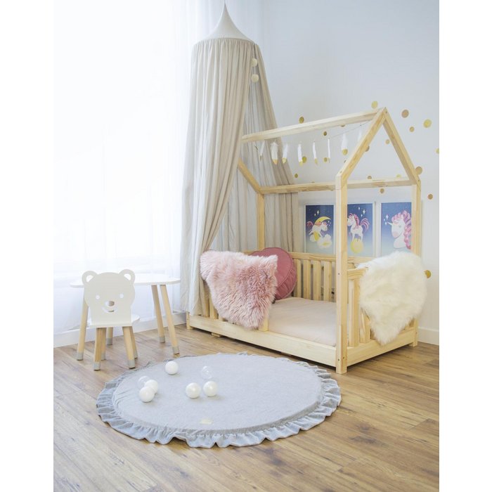 The play mats available in our shop are characterized by an exceptional design and a variety of colors and shapes, allowing them to be adapted to even the most sophisticated nursery decor. Each mat has a visible logo of our brand, which is a confirmation of the top quality of the products we sell. The edges of the round mats are finished with fine fringe - meticulous performance and eye-catching appearance are the most important aspect for us, with the exception of safety and usage aspects, taken into account by us during design.
