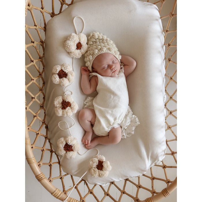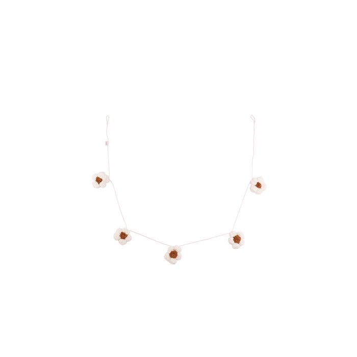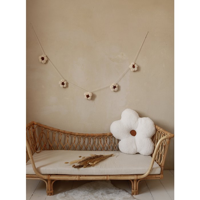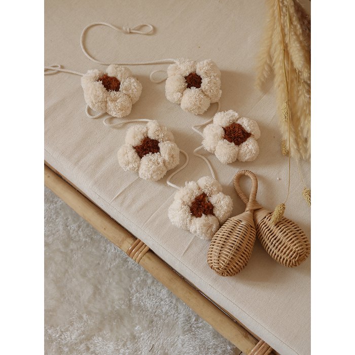 The garland is made of cotton pompoms, which form cute daisies. Beautiful natural colors will make it a beautiful decorative accent in the child's room.