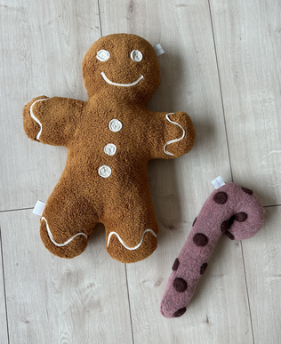 • Design: Cuddly, fluffy, maxi gingerbread man with hand-applied decorations made of cotton cord.