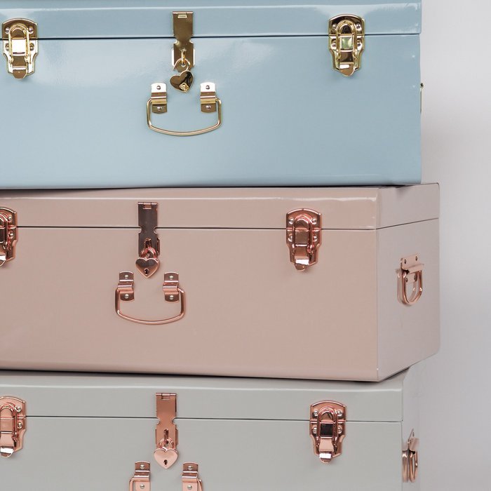 Two heart-shaped locks, with a matching key to securely close your Trunk! Extra nice if you use the Trunks as a keepsake box and extra handy if you don't want little fingers to constantly mess up everything you just neatly concealed ;)