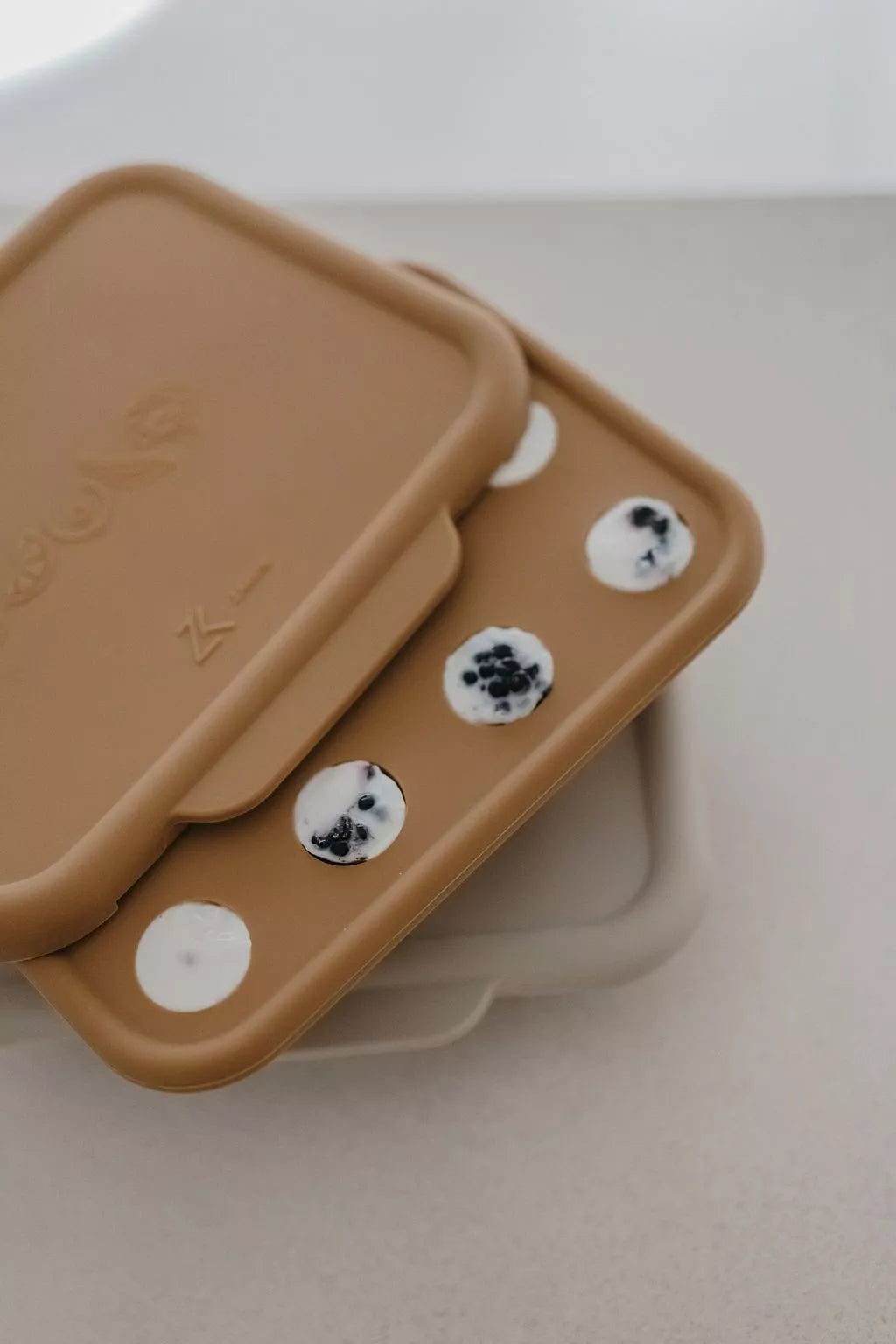 A silicone tray for making ice cubes suitable for our teats for freezing breast milk, smoothies, fruit or vegetable purees etc. to relieve the baby when teething.