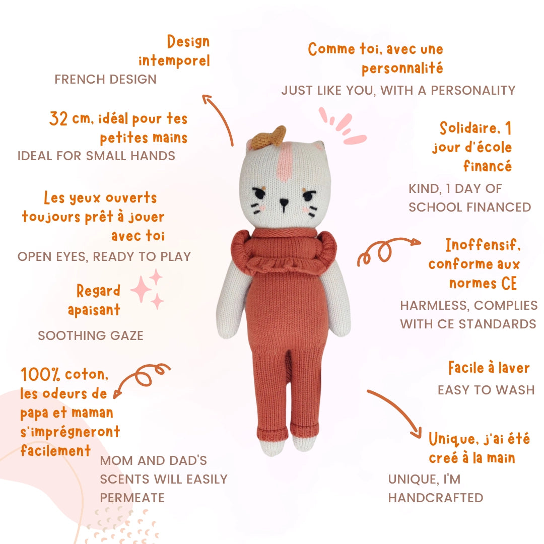 The ethical stuffed toy: 100% hand-knitted by women artisans in a fair trade workshop in Peru with Oeko-tex certified cotton.