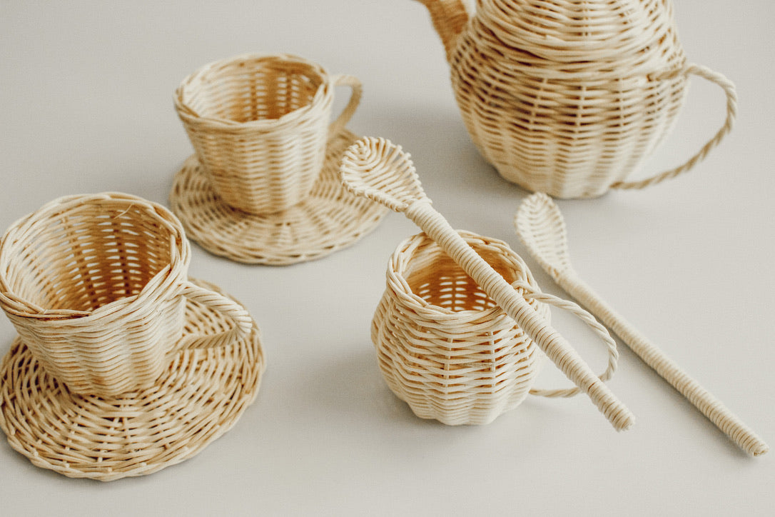 These tea sets have been handwoven from natural rattan and slight imperfections and/or colour variations are a normal feature, making each tea set truly unique.