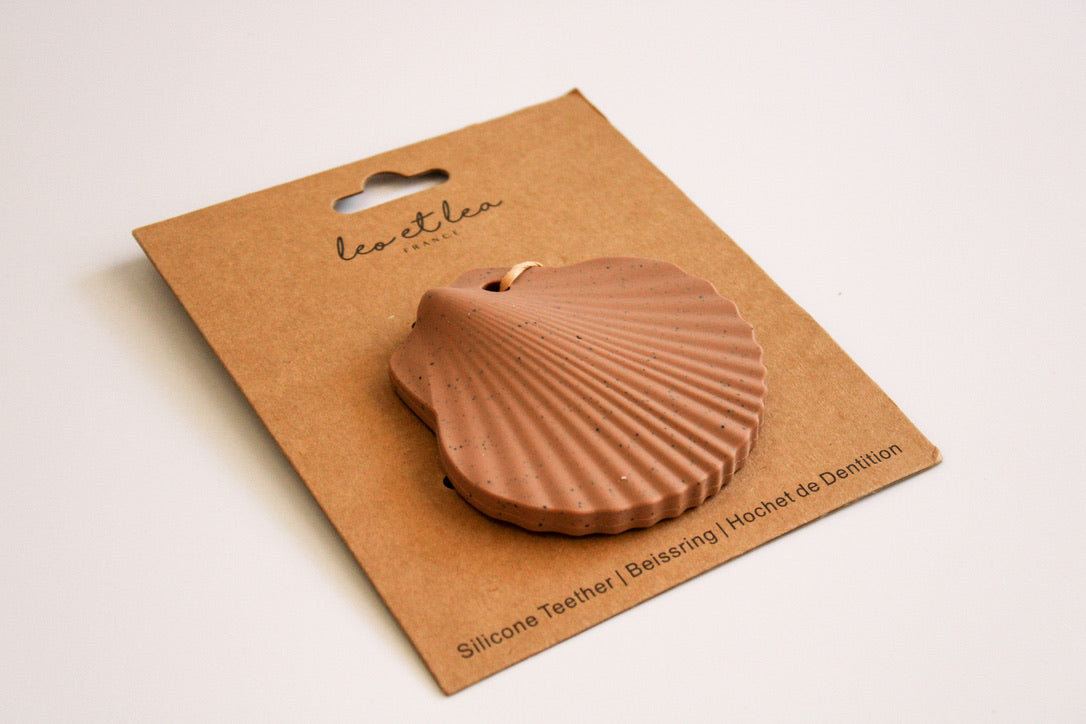 In food-grade silicone, in noble and soft colors, the 'Leo et Lea' shell teething rattle is designed to promote baby's awakening and well-being, it will stimulate his movements, coordination and dexterity.