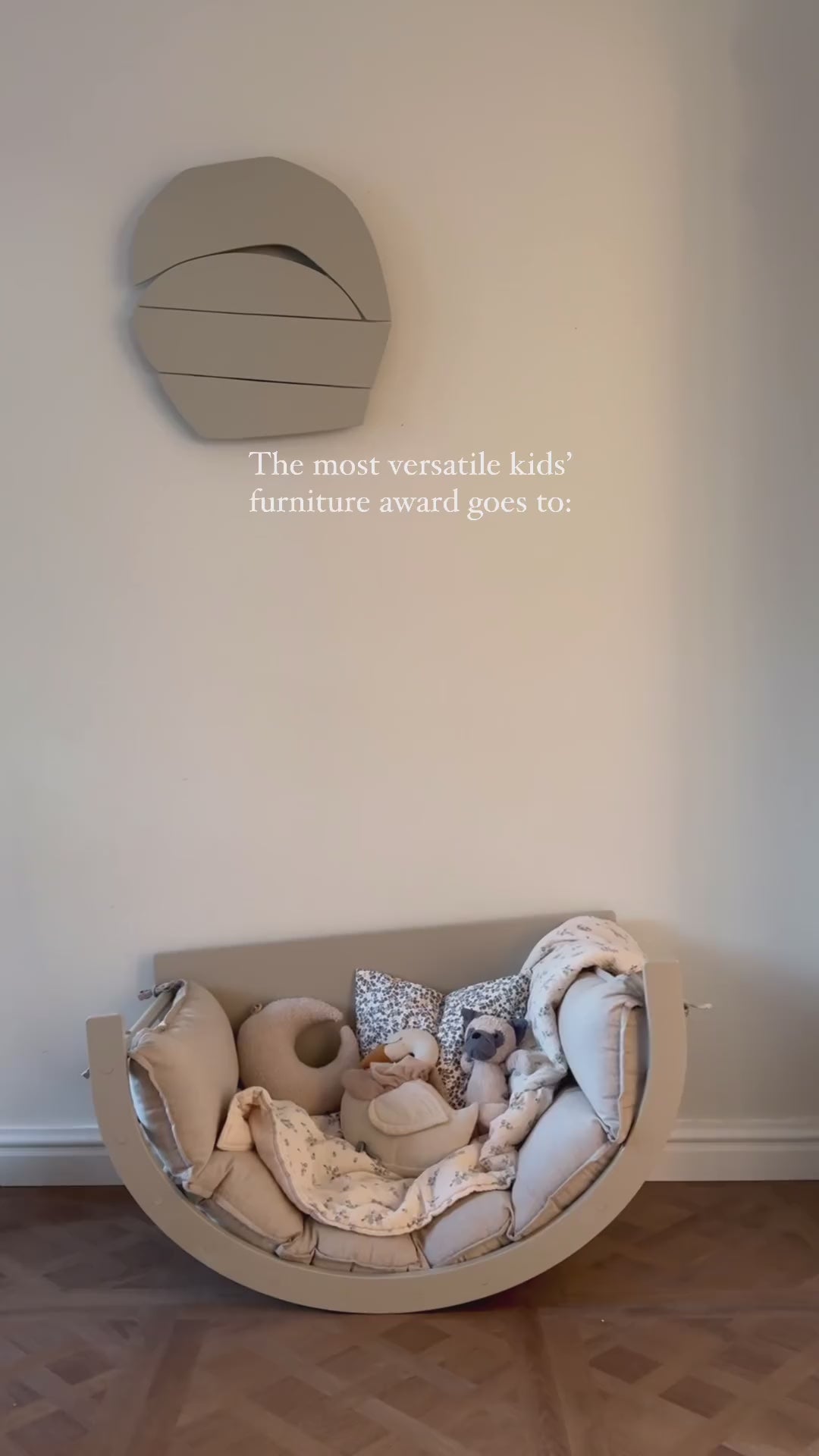 If you turn the arch on its side so that the back wall faces the floor and press it against a wall (or another LUOTO arch), it becomes a toy storage unit. Ideal for large cuddly toys or for pillows and blankets!