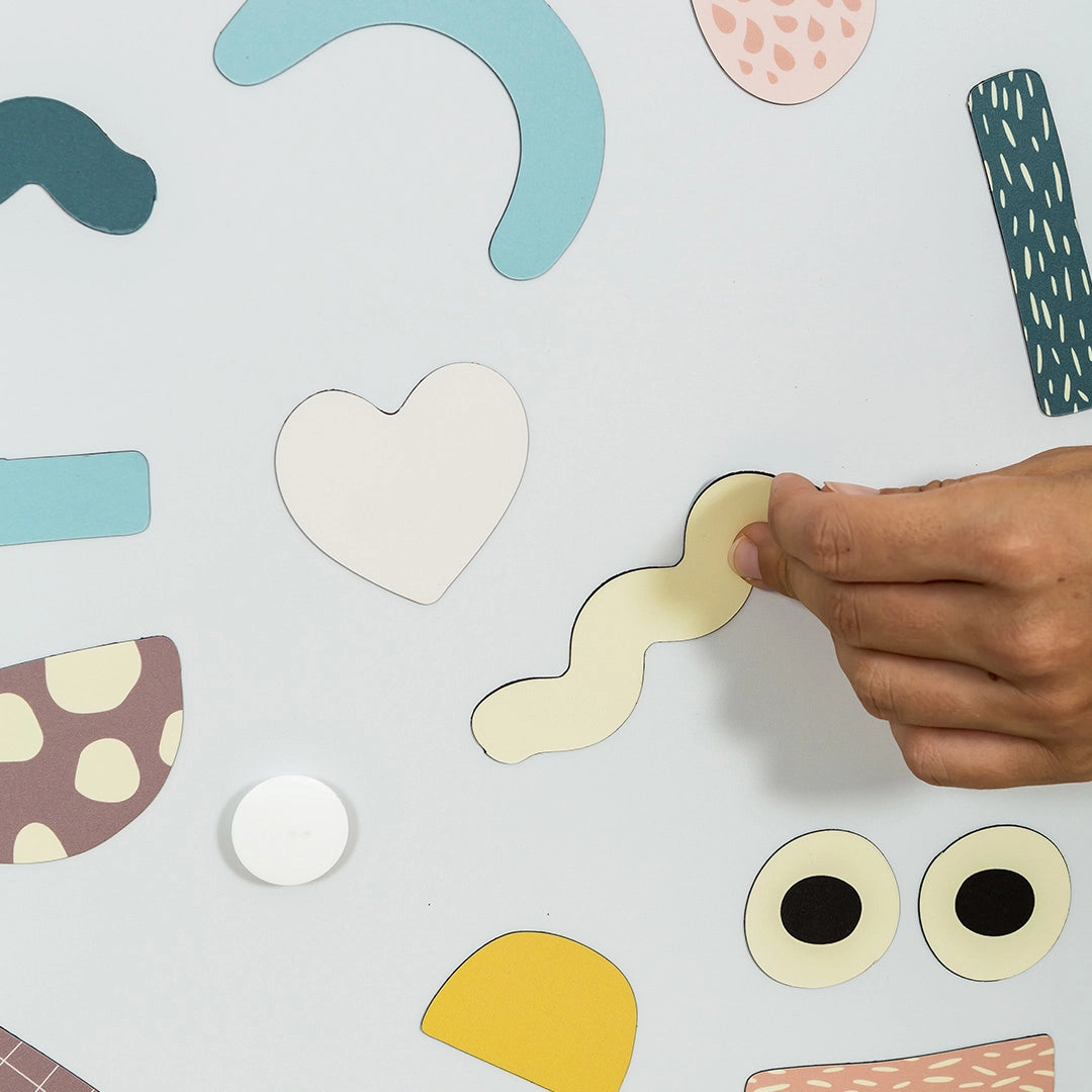 The set of magnetic shapes included in the kit allows the board to be used immediately.