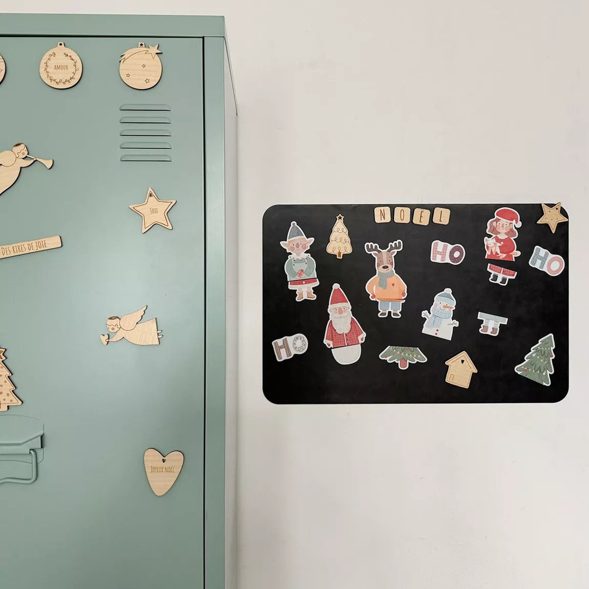 - Contents: 15 magnets, including 5 characters (Santa Claus, Father Christmas, Snowman, Reindeer), a tree and 3 "Ho Ho Ho" magnets. Each character and the tree are divided into two parts for multiple combinations.
