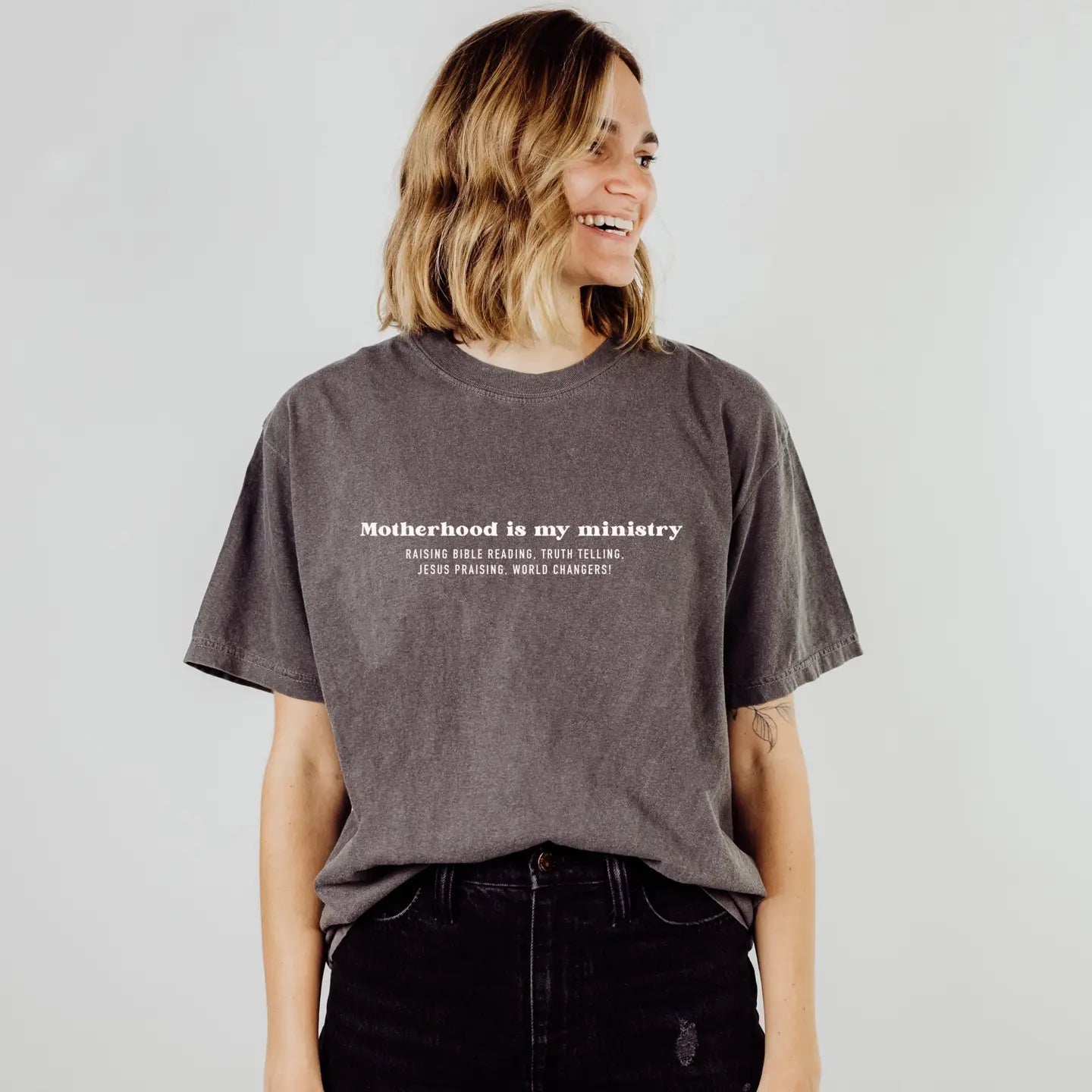 Embrace the sacred journey of motherhood with our faith-based tee: "Motherhood is My Ministry."