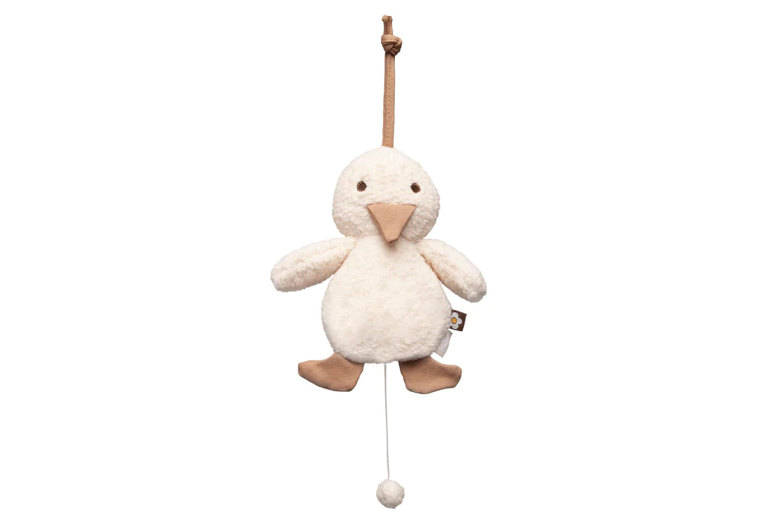 This sweet little duck will sing for your little one! This musical hanger plays the tune ''Lullaby'' when you pull the string. This can have a calming effect on your baby. Tip: Play the tune frequently near your belly while you're pregnant, and you will see that it'll feel familiar and soothing to your newborn baby. That's why the musical hanger is a great baby shower gift. And it's also a perfect maternity gift. Also available with a cute little flower.