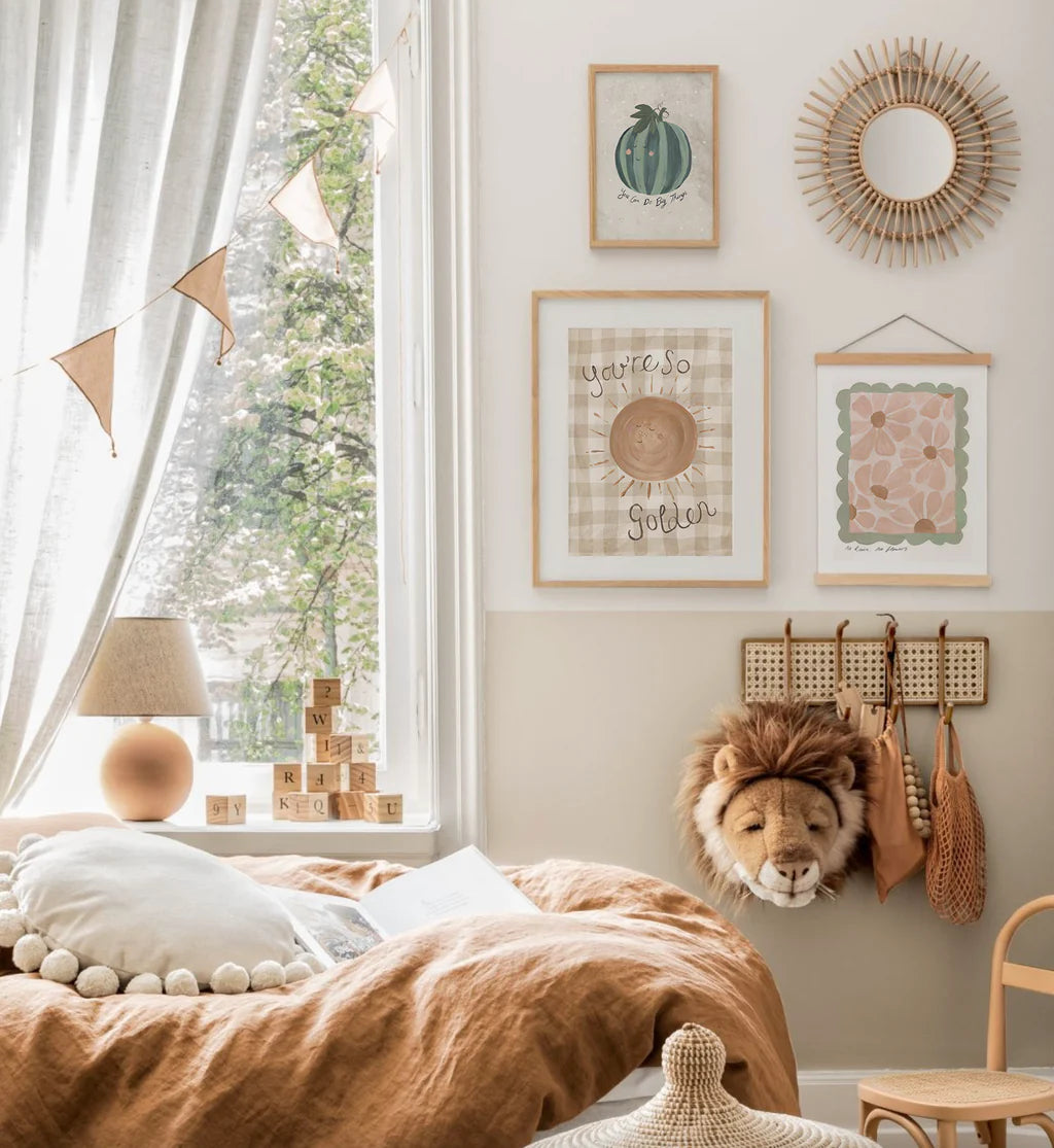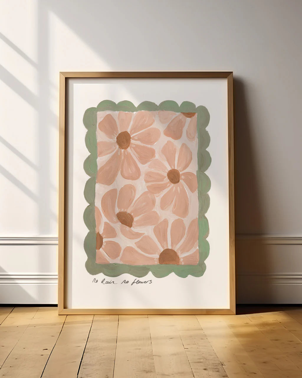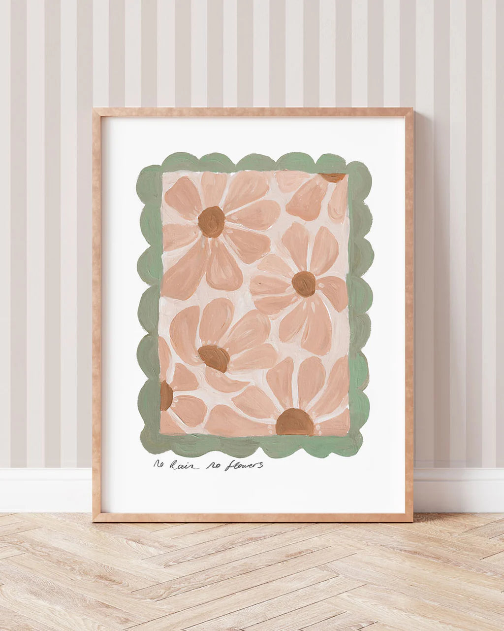 Featuring a hand-painted acrylic illustration of pink daisies on a scalloped background perfect floral finishing touch to their room.