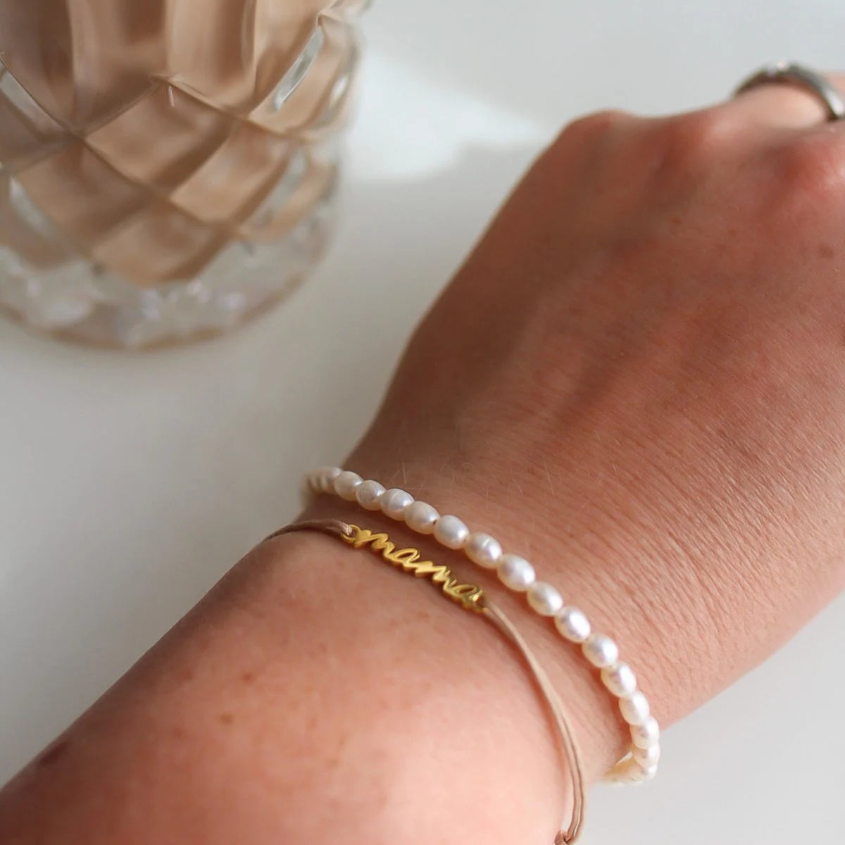 This adorable mama bracelet is handmade and adapts to your wrist as it features a sliding knot system.
