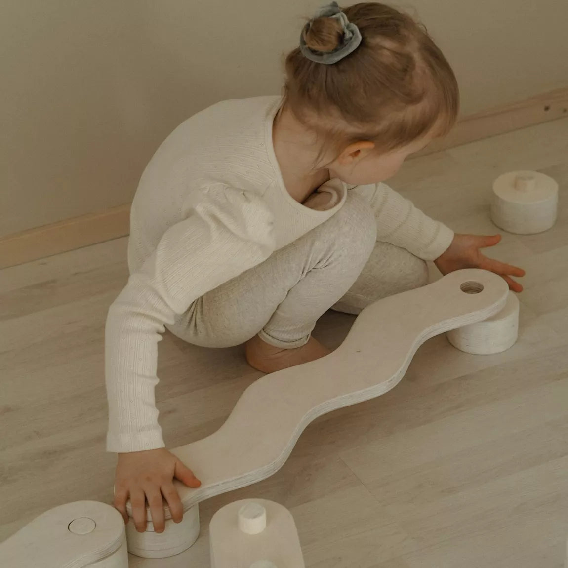 For more advanced balancers and fearless beam track designers, we have the POLKU L, which features a total of 8 beams and 10 connectors to create the most imaginative tracks. L is definitely the first choice if several children want to play with the track at the same time or you simply want to give your little designers more bars to play and explore!