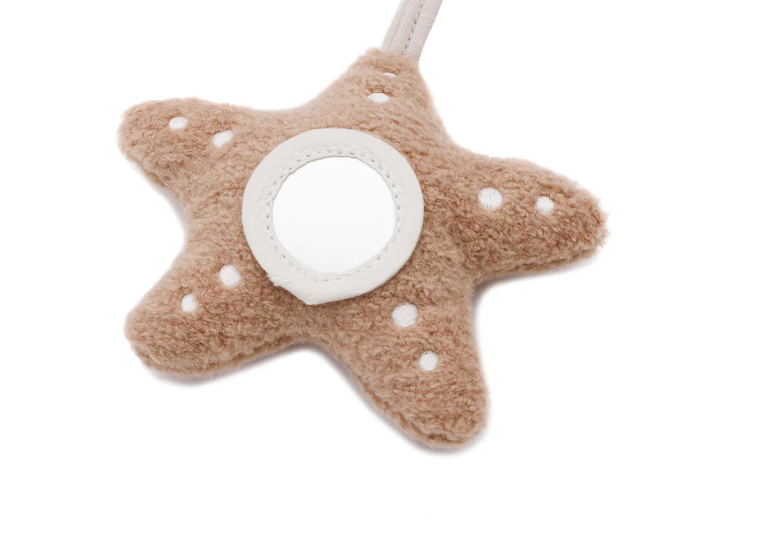 Let your little one discover the magic of the ocean with our Deep Sea stroller arch. This beautiful accessory is easy to attach to the stroller and has adorable sea creatures attached to it, such as a starfish, a seal and a whale. Every animal has a unique design and fabric, such as a teddy starfish with a little mirror, and a little whale with a crackling tail, all in trendy colours like biscuit, olive green and oatmeal. With this stroller arch, your little one will always have something fun to look at and discover during walks. Add some underwater adventure to the stroller with this enchanting Deep Sea stroller arch.